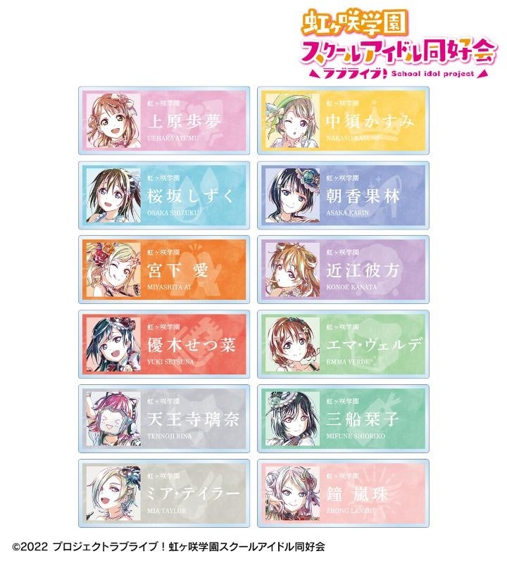 上原歩夢、中須かすみ、桜坂しずく、朝香果林、宮下 愛、近江彼方、優木せつ菜、エマ・ヴェルデ、天王寺璃奈、三船栞子、ミア・テイラー、鐘 嵐珠のイラストを新たなタッチで魅力的に表現し、アクリルネームプレートに仕上げました。