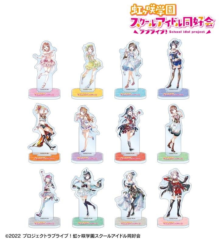 上原歩夢、中須かすみ、桜坂しずく、朝香果林、宮下 愛、近江彼方、優木せつ菜、エマ・ヴェルデ、天王寺璃奈、三船栞子、ミア・テイラー、鐘 嵐珠のイラストを新たなタッチで魅力的に表現し、アクリルスタンドに仕上げました。