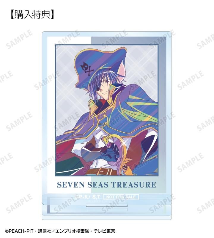 アミュレットハート、アミュレットスペード、アミュレットクローバー、アミュレットダイヤ、アミュレットフォーチュン、アミュレットエンジェル、アミュレットデビル、セブンシーズトレジャー、デスレーベル、プラチナロワイヤル、ヤマトマイヒメ、スカイジャック、ディアベイビー、クラウンドロップ、サムライソウル、ビートジャンパー、セラフィックチャームのイラストを新たなタッチで魅力的に表現し、パーツ付きのアクリルスタンドに仕上げました。