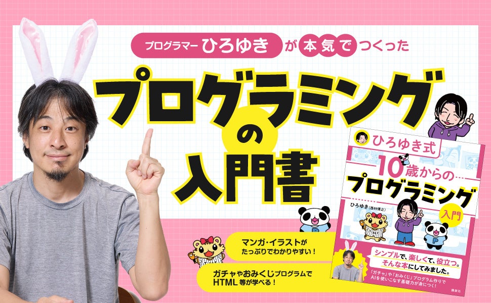 【チャンネル登録者数160万人超え】プログラマーひろゆき氏、初の子ども向けプログラミング入門書が発売!