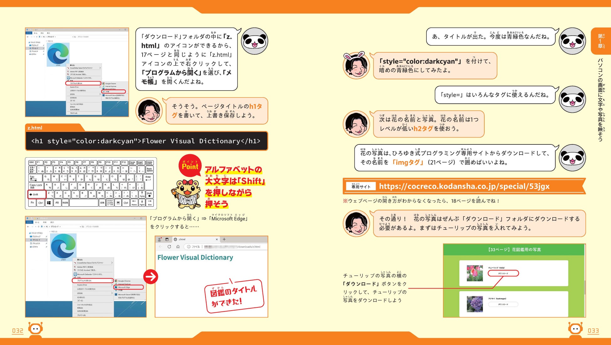 実際にHTMLやJavaScriptを使って、画像や文字を表示させる基礎の基礎から、図鑑のWEBサイトやサイコロやガチャ、おみくじゲームのつくり方まで盛りだくさん。