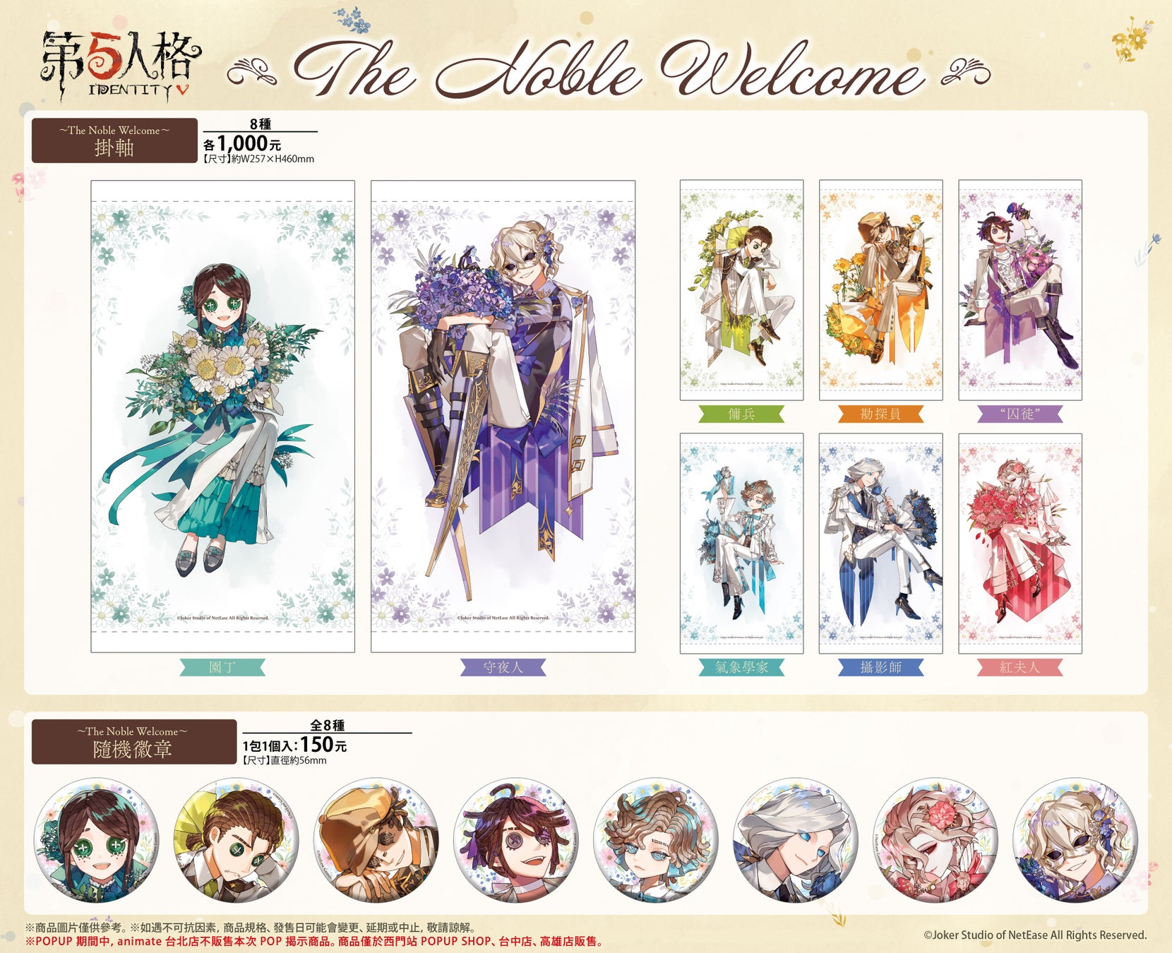 ※ポップアップショップ開催期間中、「~The Noble Welcome~」シリーズ商品はアニメイト西門駅POPUP SHOP、台中店、高雄店で販売します。台北店では販売しません。