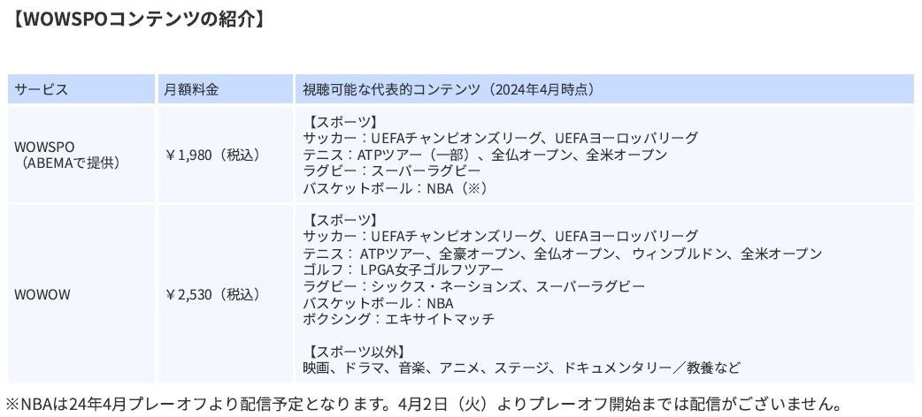 ・「WOWSPO」は「WOWOW」とは提供番組やサービス内容が異なります。