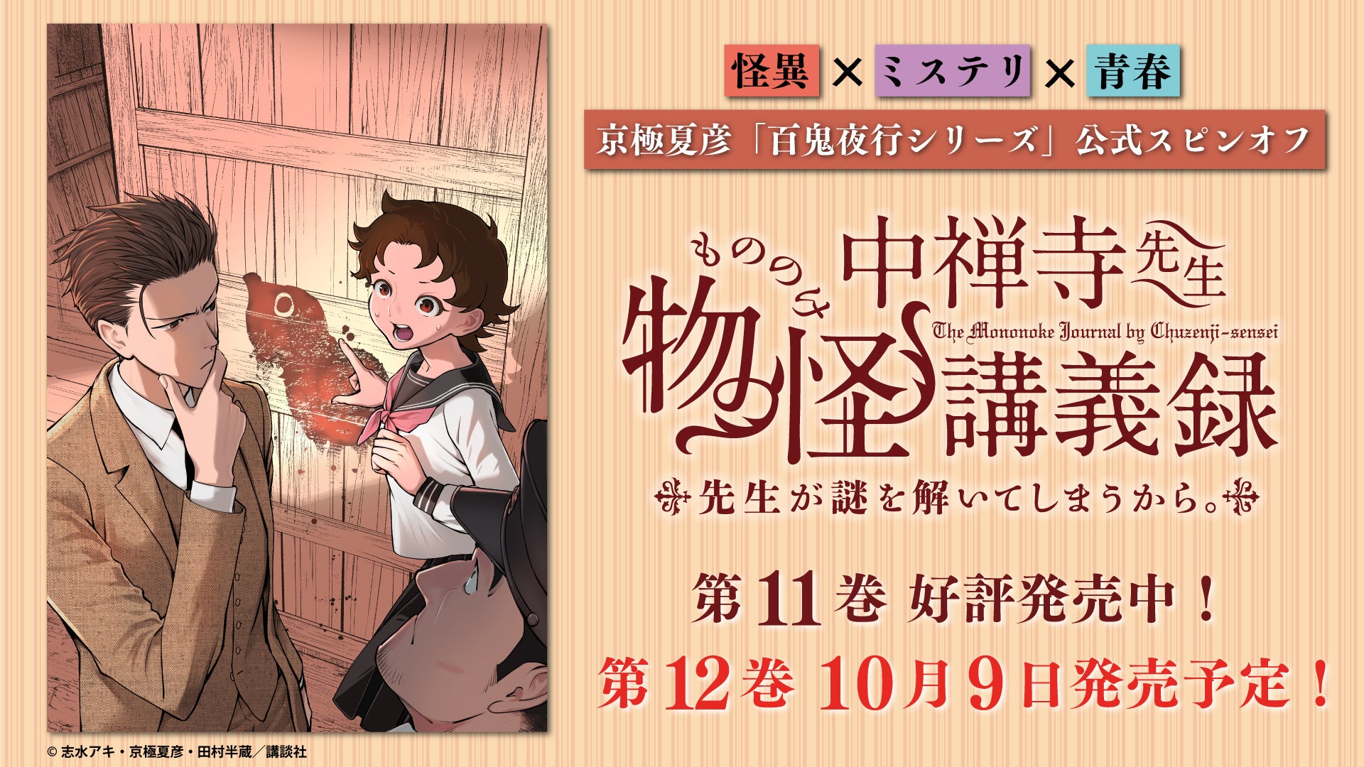 『中禅寺先生物怪講義録 先生が謎を解いてしまうから。』YouTubeで全12話を無料公開、本日配信スタート【原作コミックス最新第12巻は10月9日発売!】