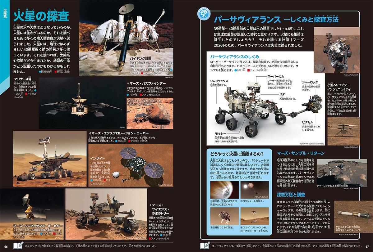 見ているだけでわくわくする、ロケットや探査機のビジュアルをたくさん掲載。近年話題のスペースX社のロケットや衛星技術なども掲載しています。