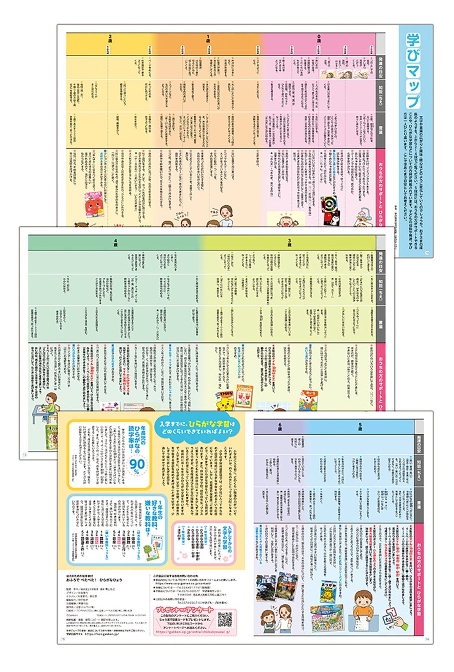 学研教育総合研究所の「学びマップ」を使い方ガイドに掲載しています。お子さまの発達や知能、言葉の習得の目安にしていただけます。また、いつ頃からひらがなの学びを始めたらよいか、おうちの方がサポートできることは何かなどを確認することができます。