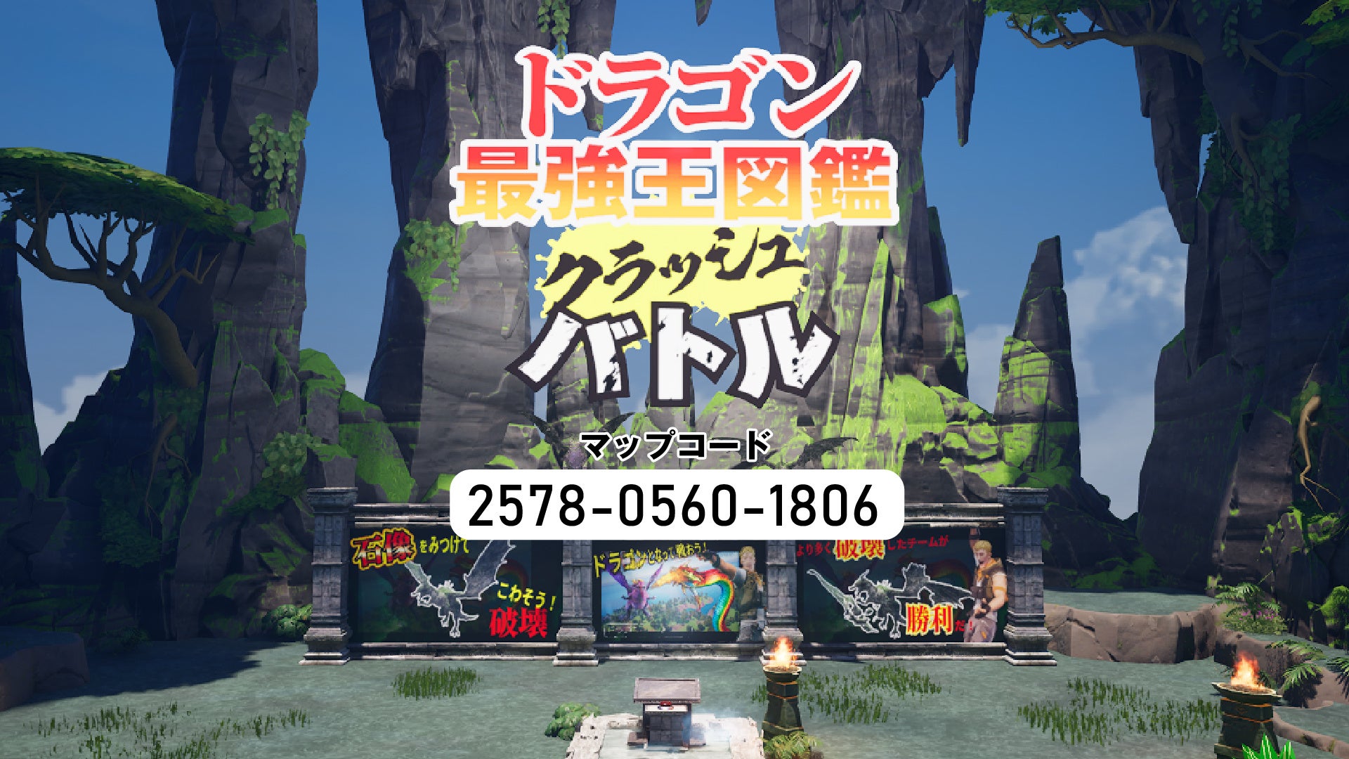 ここからは大人気オンラインゲーム、フォートナイトで「ドラゴン最強王図鑑クラッシュバトル」が楽しめるぞ!