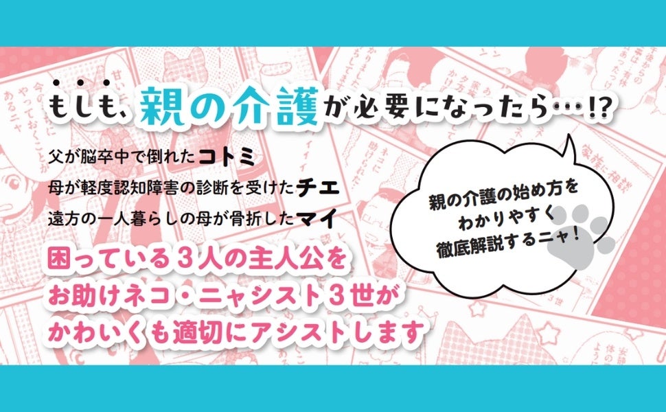 【介護マンガ】電子連載でも好評の「お助けネコ」がついに単行本化! 介護のキホンがわかる『マンガでわかる 親の介護の始め方』発売