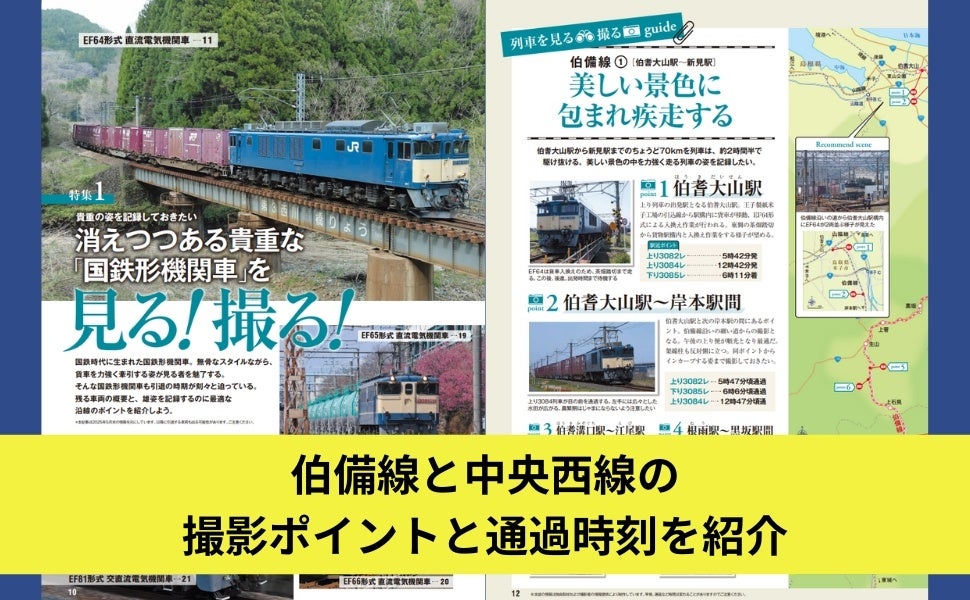 人気のEF64が走る伯備線、中央西線の撮影スポットやその通過時間などを、地図を交えて細かく解説しています。写真を撮影する際の光の向きや障害物など細かな情報も充実。ファン必見の「見る!撮る!」ための1冊です。