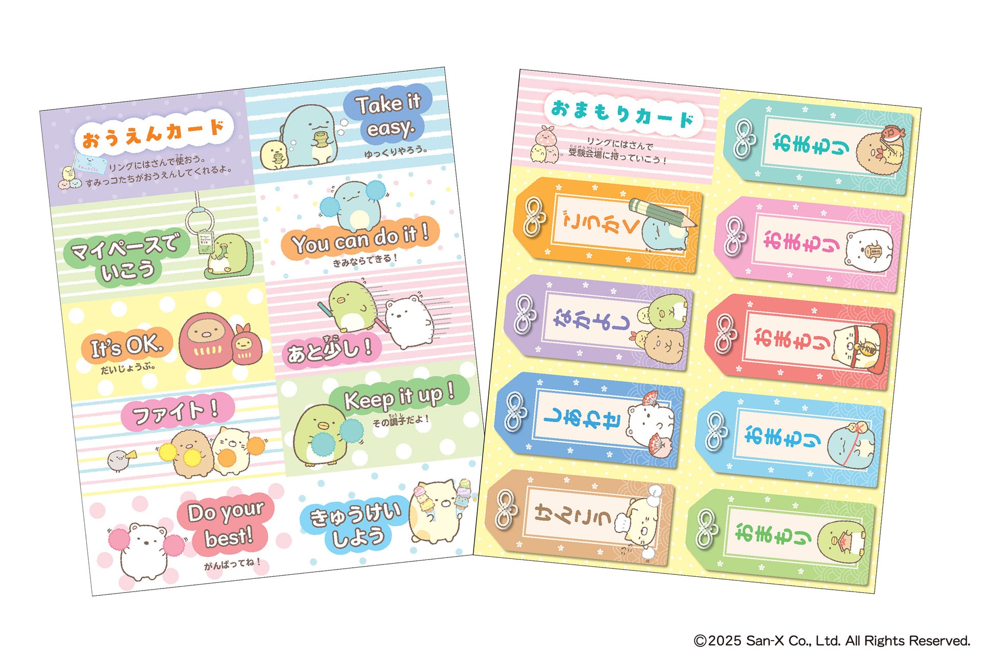 すみっコたちの「おうえんカード」10枚付き、英検受験会場にもっていける「おまもりカード」10枚付きで、すみっコたちとずっと一緒に、受験当日まで楽しく学習できます。