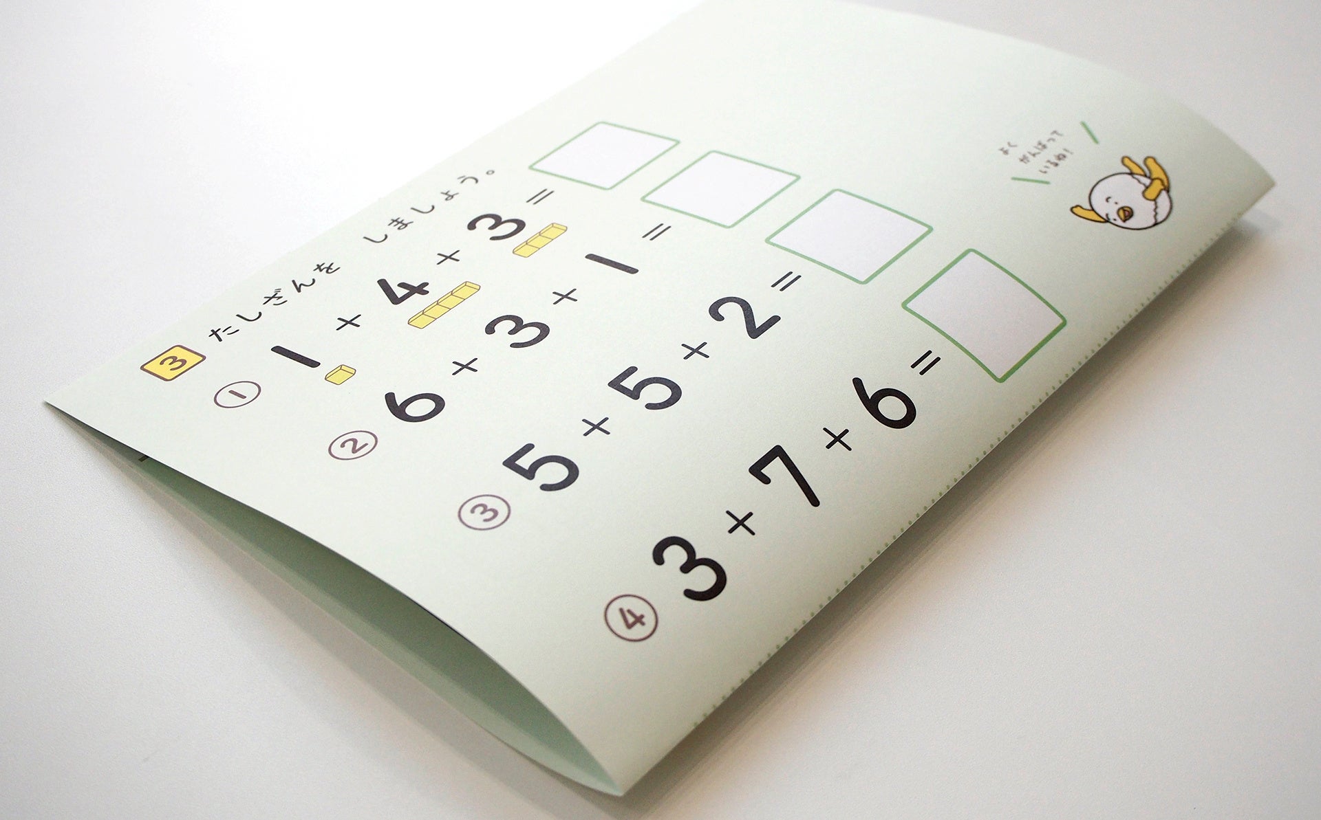 1回1枚の切り取り式だから、「今日はこれだけ!」と決めて、目の前の問題に集中して取り組むことができます。1枚やりきるのが難しい日は、紙面を折り線で折って、取り組む問題数を減らすこともできます。