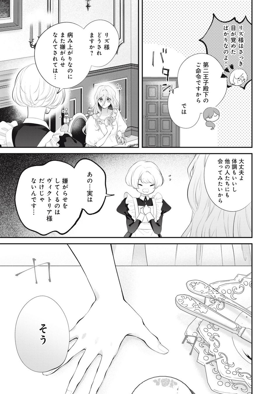 さらに王宮では、第1王子が暗殺されるという衝撃事件が発生。混乱の中、次期国王の座をめぐって現れる3人の王子たちが、変貌を遂げたリズに思惑ありげに近づいてくる――。