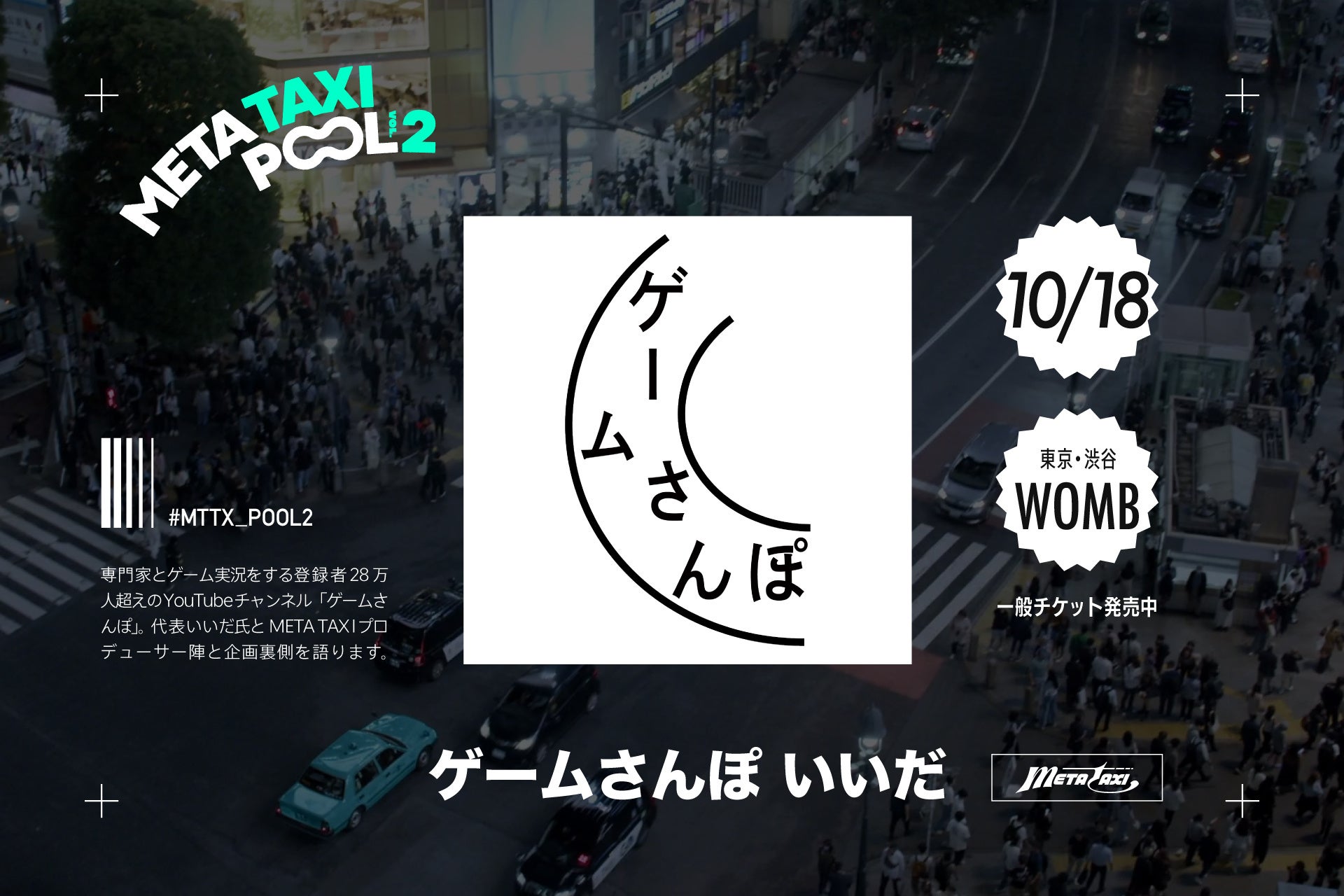 今年の東京ゲームショウにも出演した登録者28万人超えの人気YouTubeチャンネル『ゲームさんぽ』からは「いいだ」が出演決定。かけ合わせが特徴の2つのチャンネル『ゲームさんぽ』と『META TAXI』 の裏側が明らかになります。