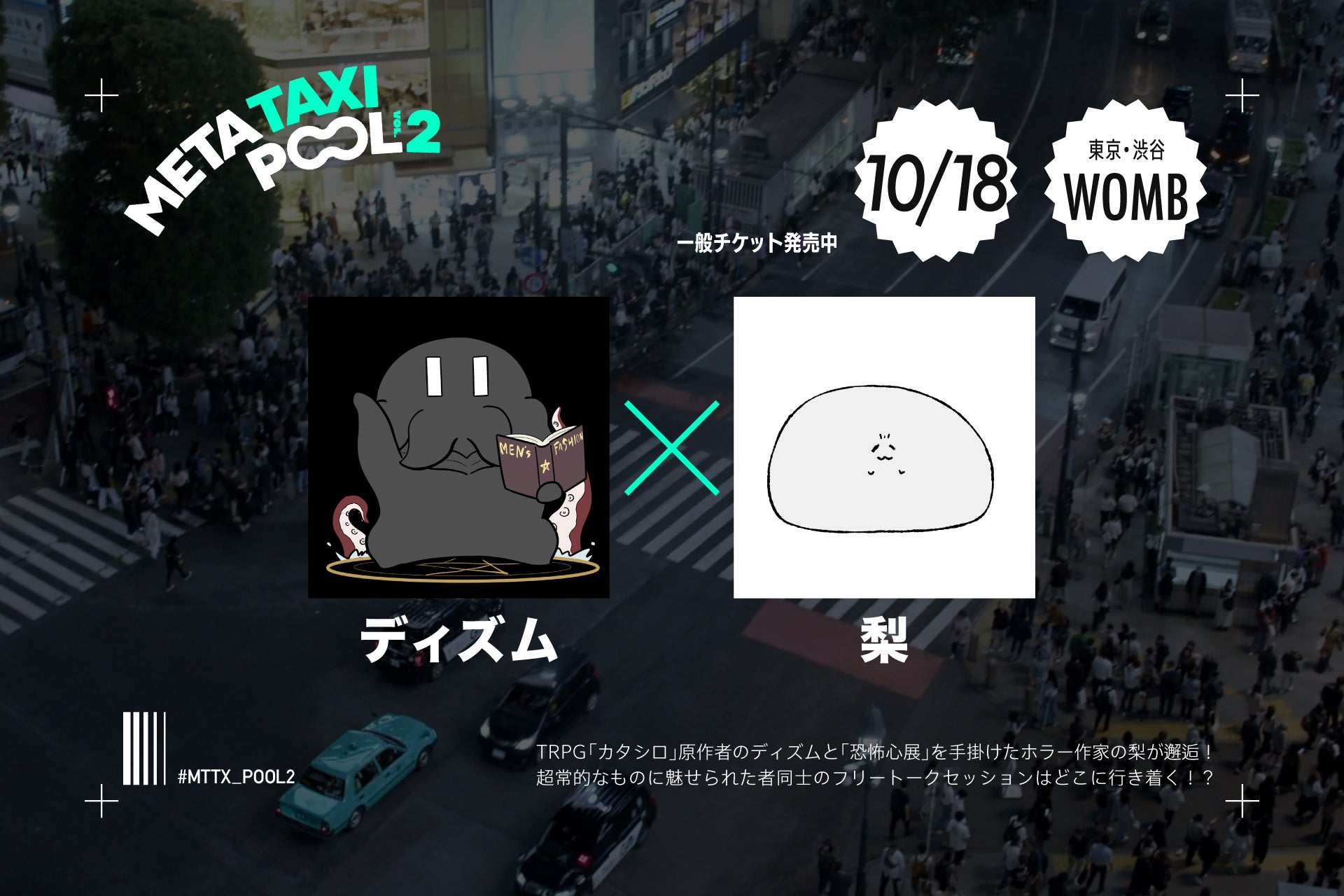 夜のタクシーに乗り合わせた二人がトークを繰り広げるYouTubeチャンネル『META TAXI / メタタクシー』が手掛けるリアルイベント『META TAXI - POOL Vol.2-』のフルラインナップが公開となりました。