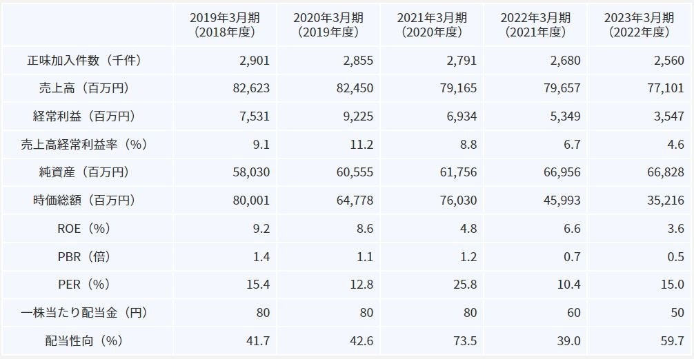 当社は、2018年度まで13期連続で会員数が増加し、着実な利益成長と自己資本利益率(ROE)8%以上のリターンを実現するとともに、株価純資産倍率(PBR)についても2020年度まで、1倍を上回る状況が続いておりました。しかしながら近年、配信サービスとの競争激化やお客さまの視聴スタイルの変化など、外部環境の急激な変化により、2023年度まで5期連続で会員数を減らし、業績は低迷しております。