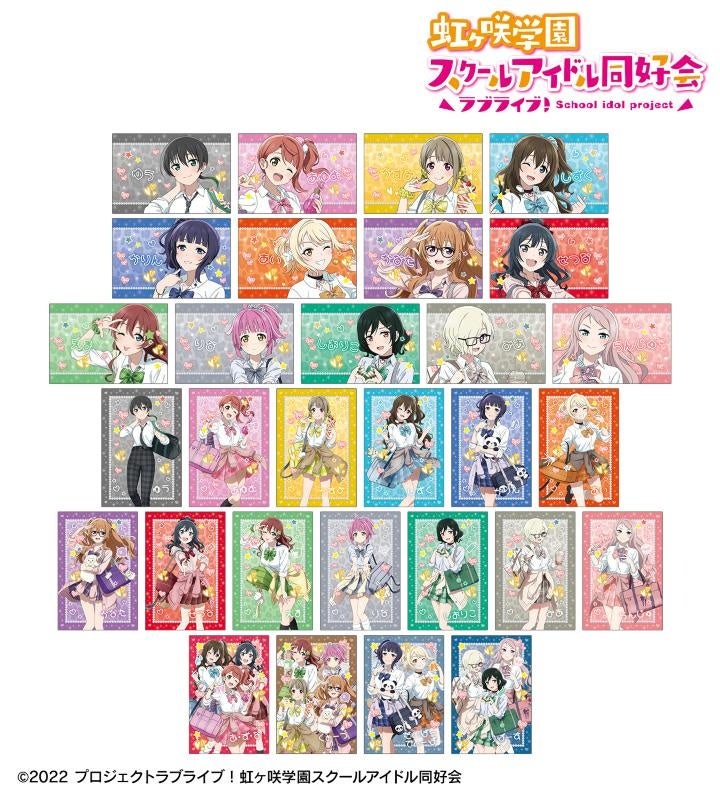 種類 :全13種(高咲 侑、上原歩夢、中須かすみ、桜坂しずく、朝香果林、宮下 愛、近江彼方、優木せつ菜、エマ・ヴェルデ、天王寺璃奈、三船栞子、ミア・テイラー、鐘 嵐珠)