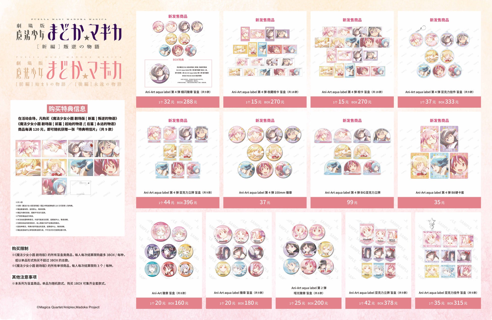 今回のイベントでは、『劇場版 魔法少女まどか☆マギカ[新編]叛逆の物語』『劇場版 魔法少女まどか☆マギカ [前編] 始まりの物語/[後編] 永遠の物語』より新規グッズや再販商品の中国国内での先行販売をする他、イベント購入特典の配布も予定しております。