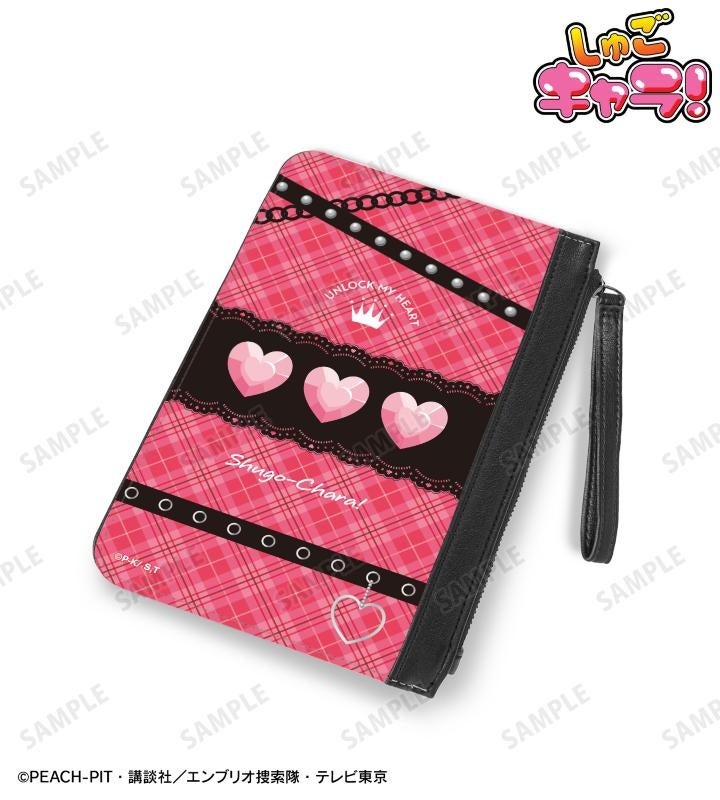ラン、ミキ、スゥ、ダイヤのしゅごたまをイメージし、ゴスパンク調のモチーフと組み合わせたPUレザーフラットポーチに仕上げました。