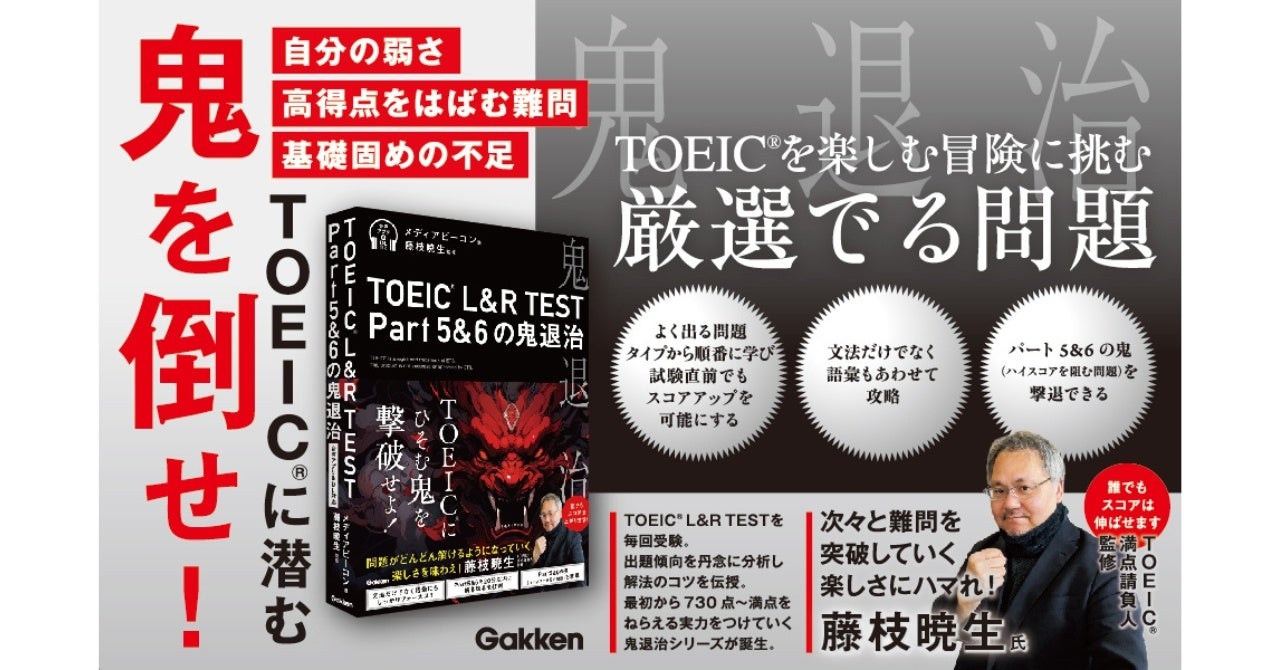 株式会社 学研ホールディングス(東京・品川/代表取締役社長:宮原博昭)のグループ会社、株式会社 Gakken(東京・品川/代表取締役社長:南條達也、以下Gakken)は、2025年6月30日(月)に『TOEIC(R) L&R TEST Part5&6の鬼退治』を発売いたしました。