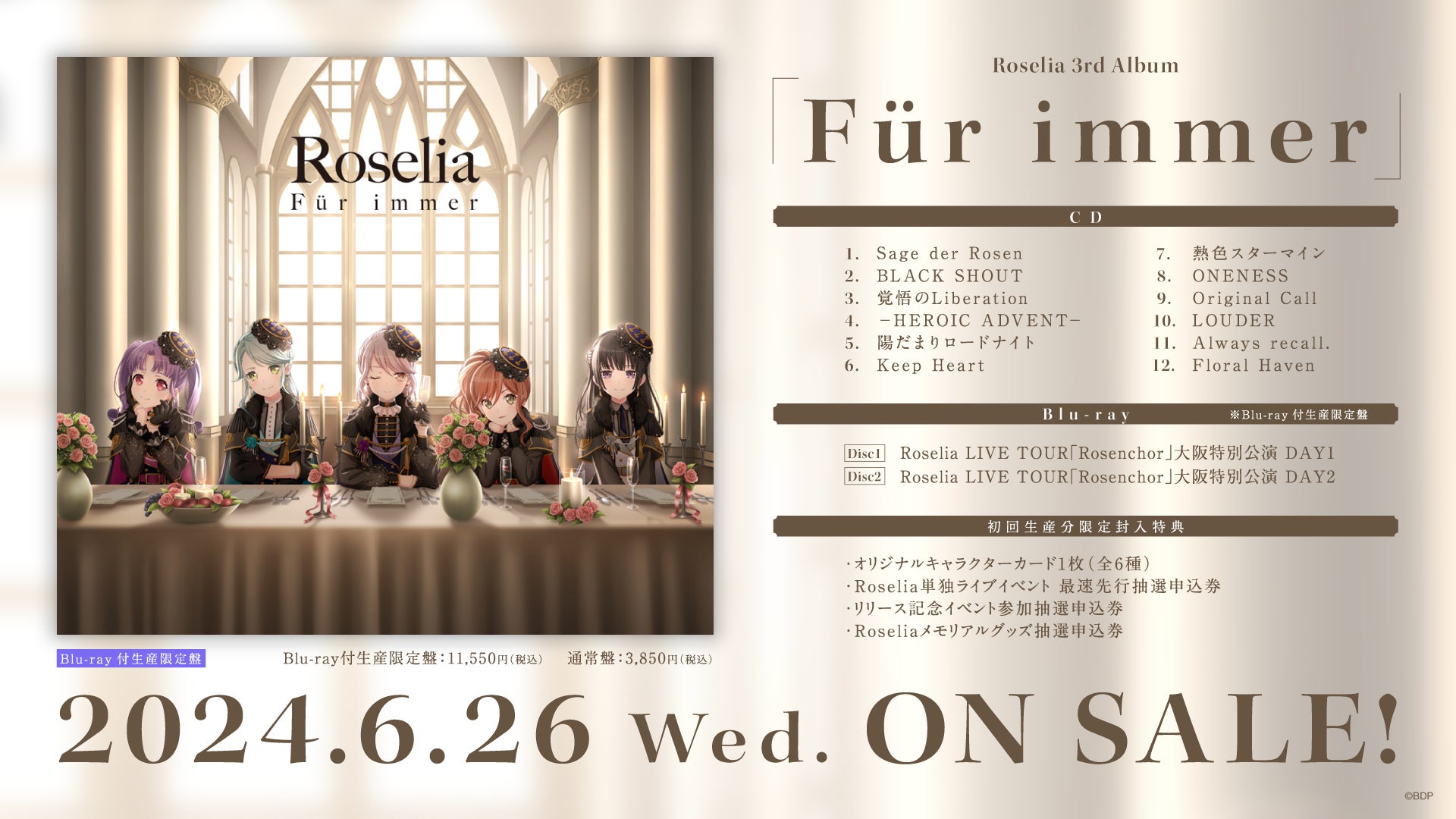 Blu-ray付生産限定盤には、Roselia LIVE TOUR「Rosenchor」大阪特別公演2DAYSのライブ映像が収録されます。