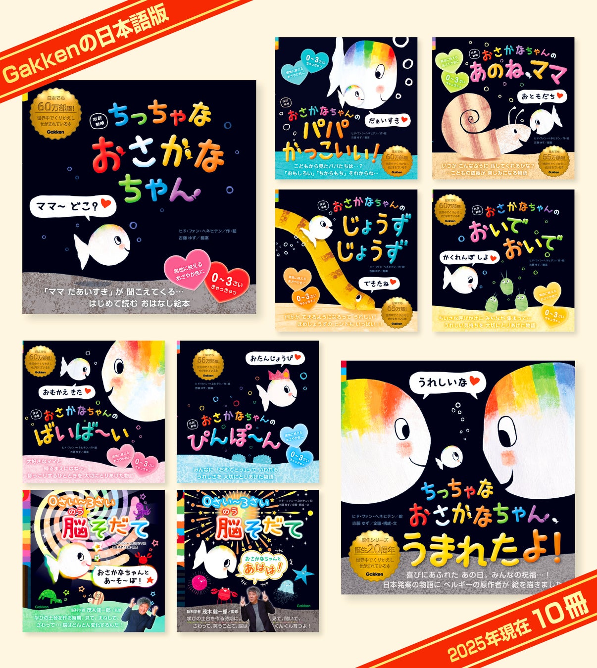 ベルギーを代表する絵本作家、ヒド・ファン・へネヒテン氏作の『ちっちゃな おさかなちゃん』の物語は、2004年の原作誕生から2025年ではや21年。世界中の親子に長く愛されています。