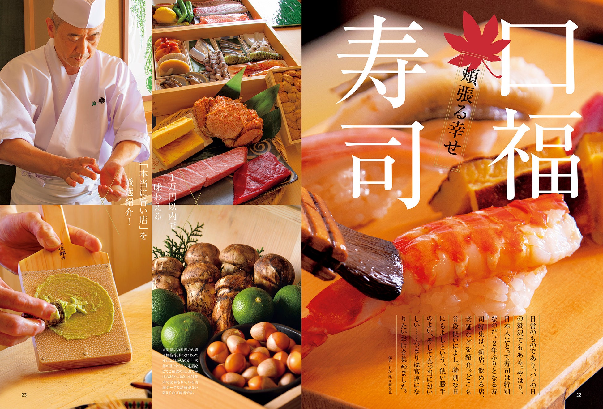 今号は1万円以内で味わえる「本当に旨い寿司屋さん」を厳選してご紹介。ほか「きのこに夢中」、「和のおやつ」特集もあります。