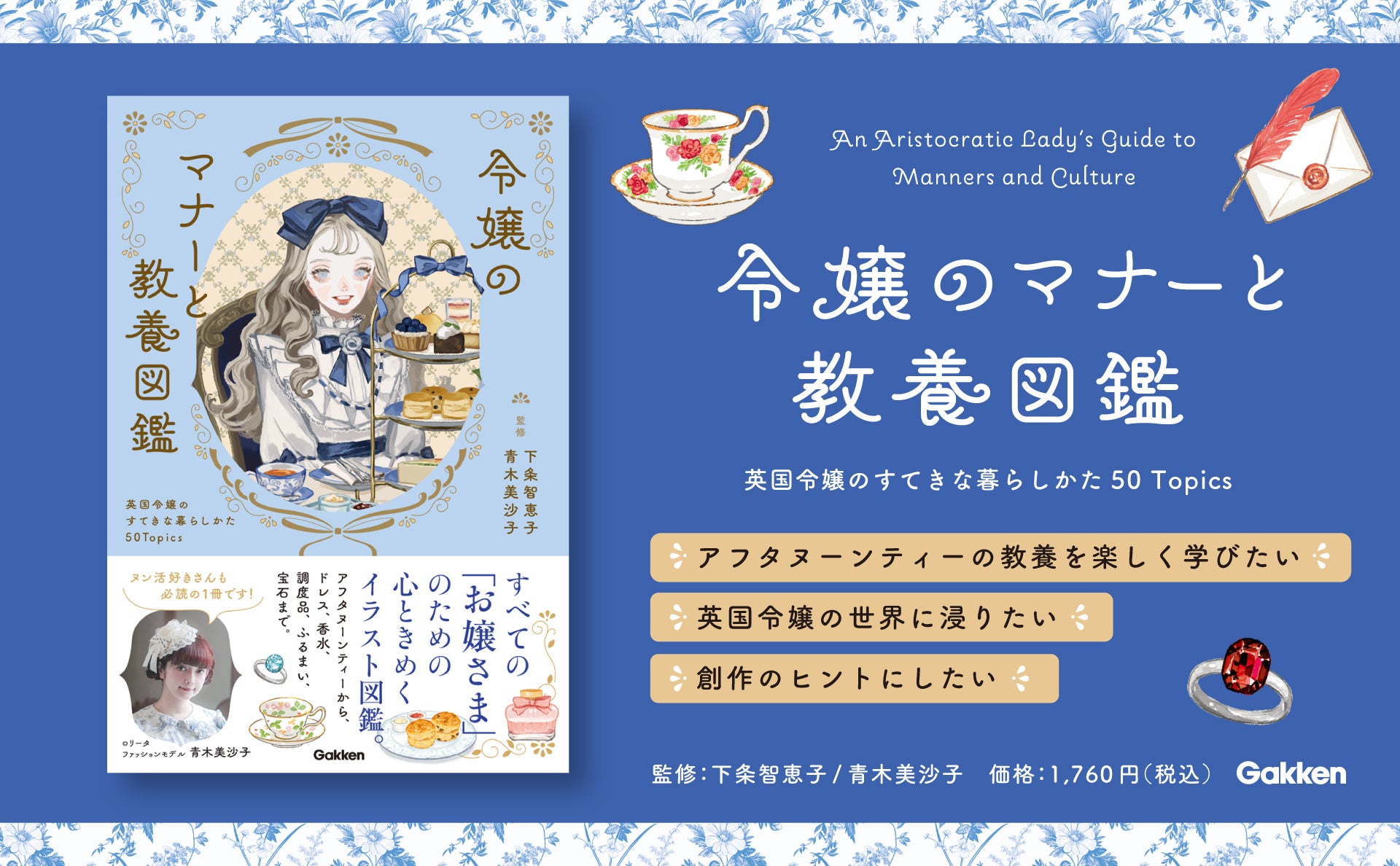 アフタヌーンティーや紅茶、ドレス、インテリア、ふるまいなど、「お嬢様」にまつわるさまざまなマナーや教養が詰まったイラスト図鑑が登場。人気ロリータファッションモデル青木美沙子監修のダウンロード特典つき。