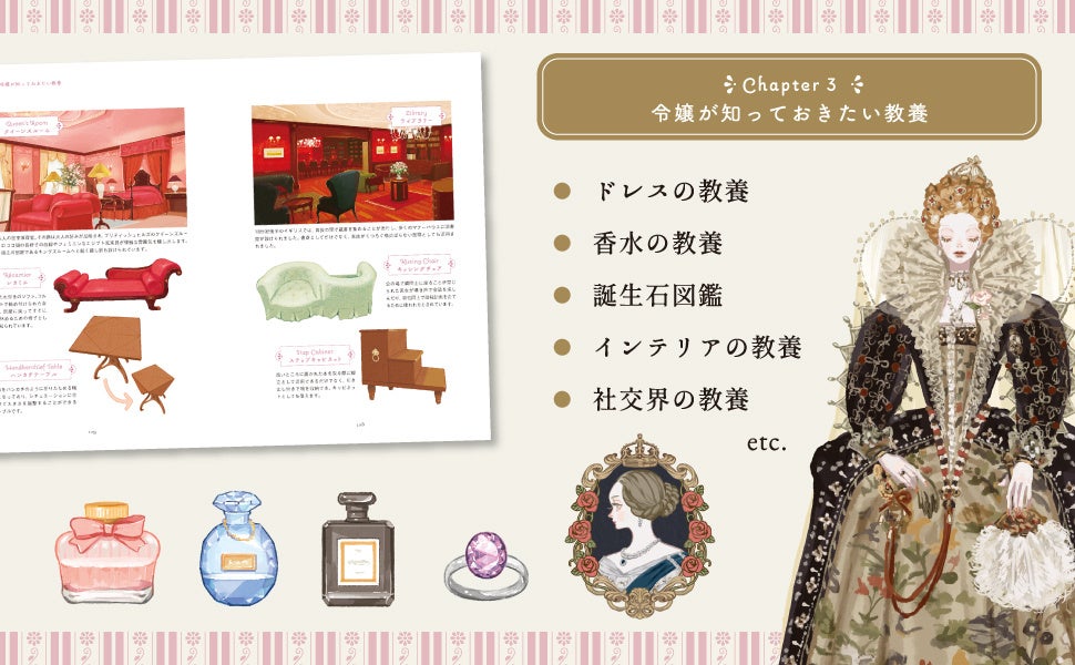 ながめるだけで心ときめく、お嬢様の世界。アフタヌーンティーやドレス、宝石など、英国令嬢にまつわるマナーや教養をまとめた、『令嬢のマナーと教養図鑑』が発売!