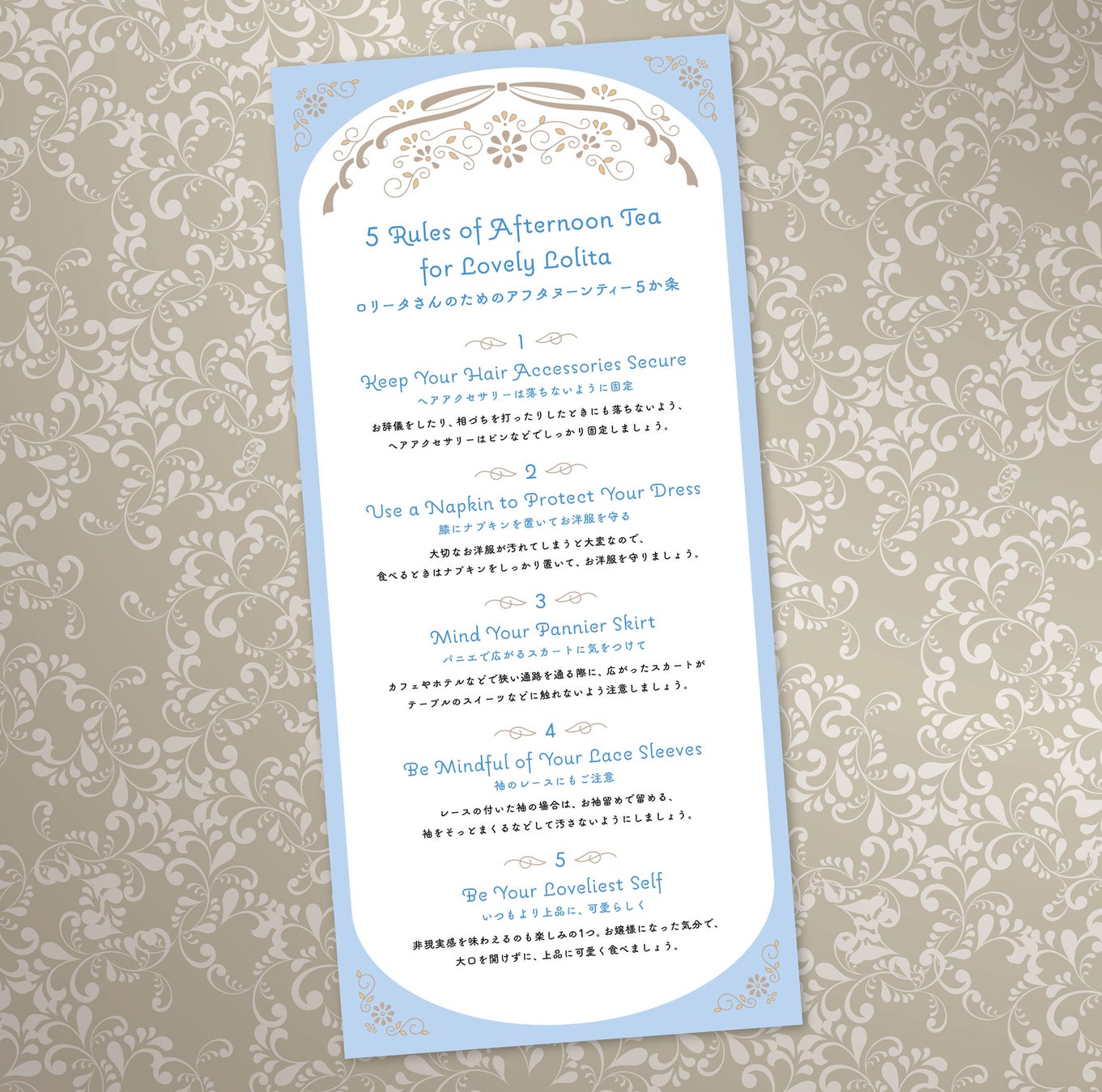 ダウンロード特典として、青木美沙子さん監修の「ロリータさんのためのアフタヌーンティー5か条」特製デジタルカードと、表紙柄のスマートフォン用壁紙がついています。
