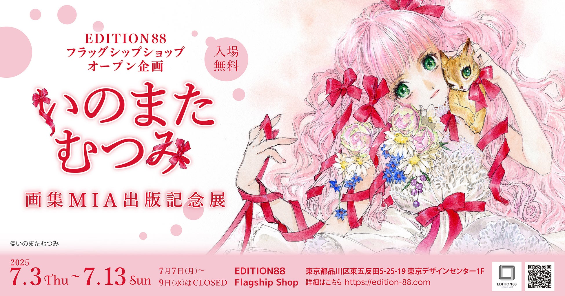 2025年7月3日~7月13日、東京・五反田駅東口の東京デザインセンター1Fのアートブランド「EDITION88」のフラッグシップショップにて、『いのまたむつみ画集 MIA(ミア)』出版記念展を開催いたします。