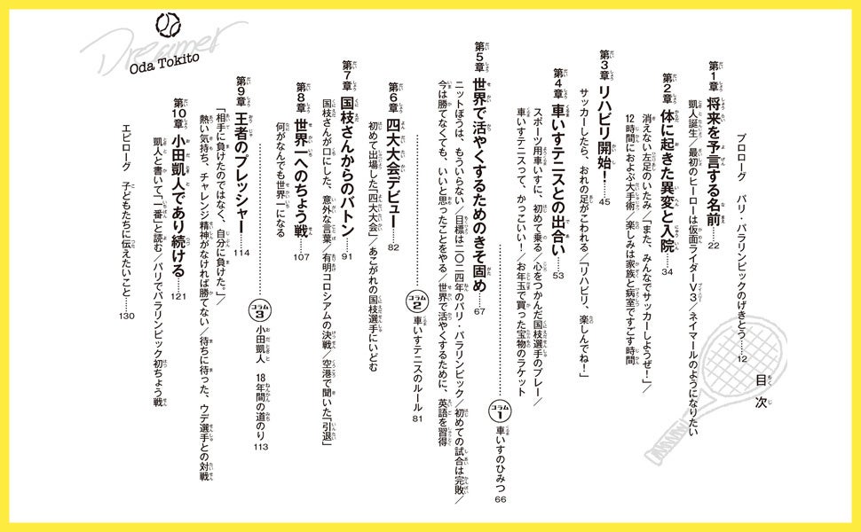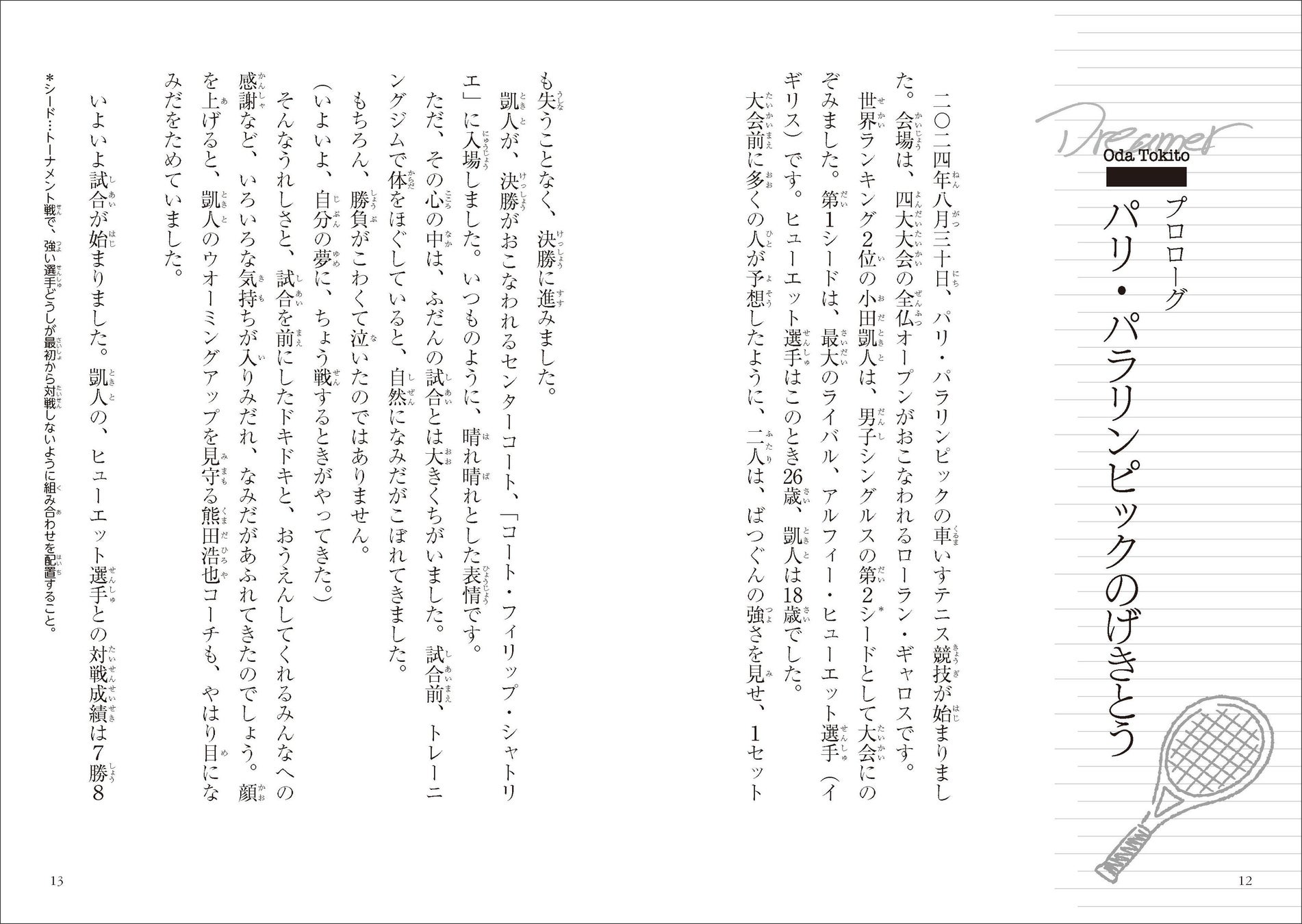 小田選手の活発だった幼少期、家族の関わり、闘病、車いすテニスとの出合い、さらにパリ・パラリンピック決勝での息詰まる熱闘の様子が、貴重な写真とわかりやすい文章でつづられています。