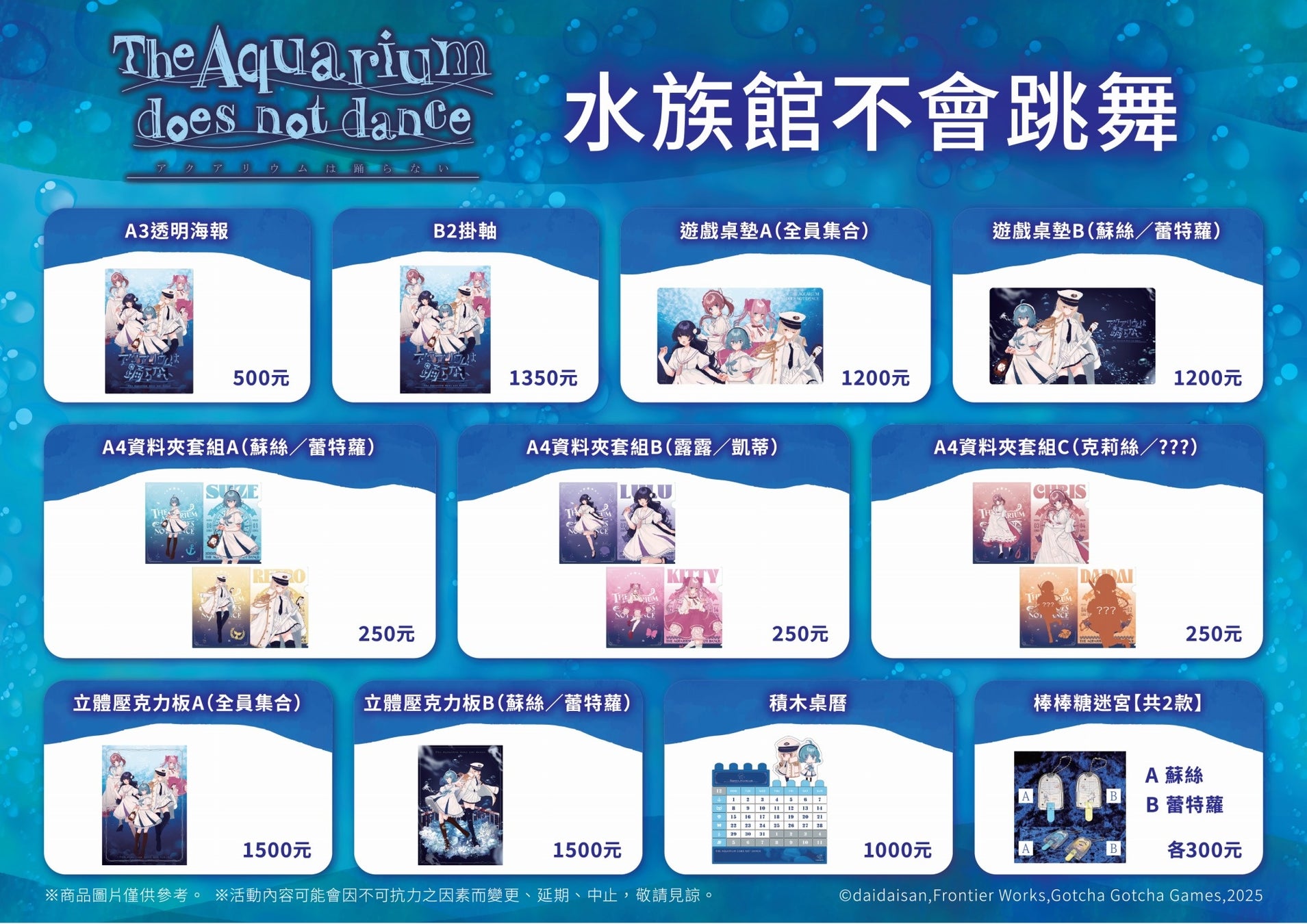 さらに、2月7日(土)13:00より、日本館ステージにて『アクアリウムは踊らない』作者・橙々さんのライブドローイングを開催します!また、2026年1月9日(金)~2月2日(月)にアニメイト台北店で『アクアリウムは踊らない』関連グッズをNT$400以上購入した方に本イベントの優先入場券を配布予定です。