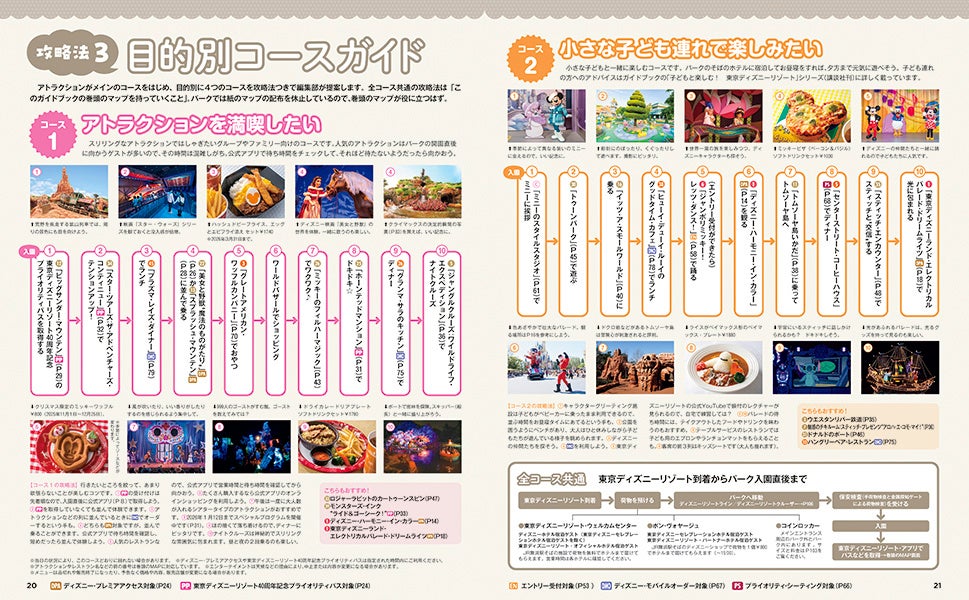 巻頭では、東京ディズニーランドを最大限に楽しむための「攻略法」を大特集。いつ行くかを決めるために知りたい東京ディズニーリゾート®の最新ニュースはもちろん、パレードルートの詳しすぎる解説や、目的別のコースガイドなど、知りたい情報が満載です。