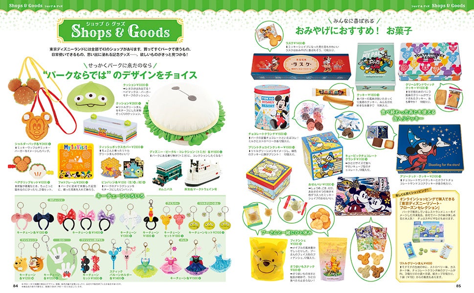 もうひとつのお楽しみはショッピング。パークならではの可愛いグッズやお土産のお菓子はぜひ手に入れたい。人気の商品を厳選して掲載しているので、事前に欲しいものをチェックしておきましょう。