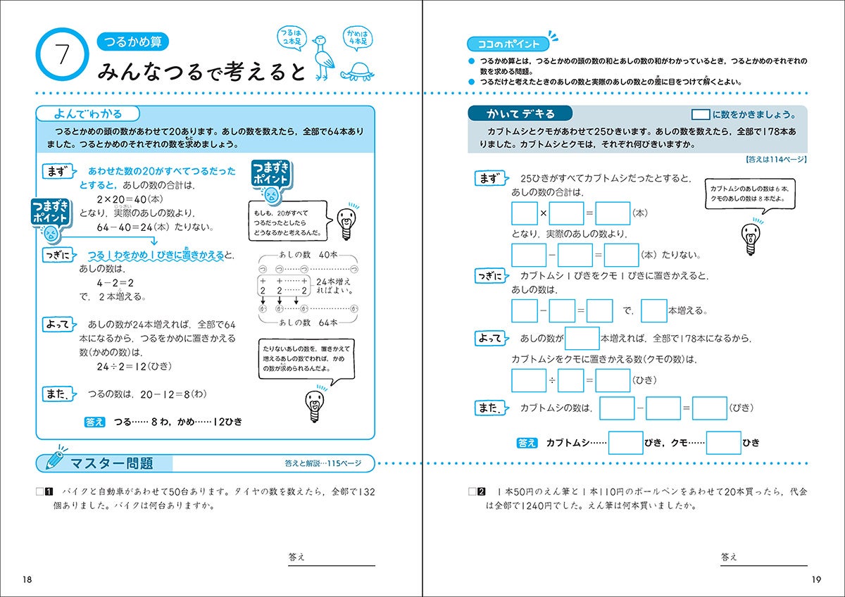 【特長①】つるかめ算、分配法則、図形の移動……つまずきやすい問題の解き方がぜんぶわかる!(算数)
