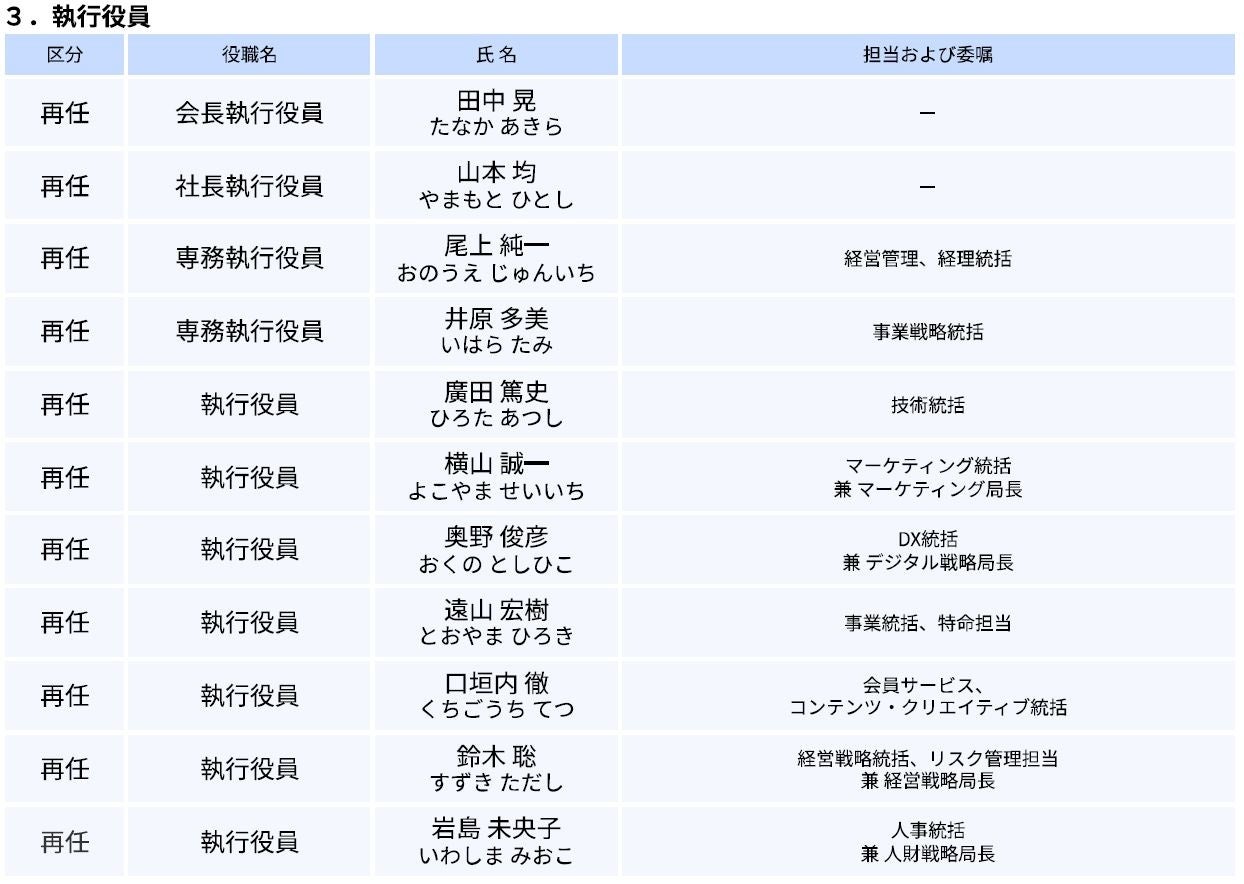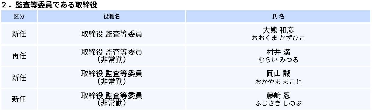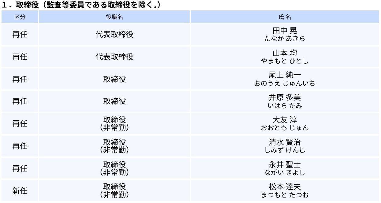 当社は、本日開催の第40回定時株主総会および取締役会において、役員人事を決定いたしましたので経営体制を下記のとおりお知らせいたします。