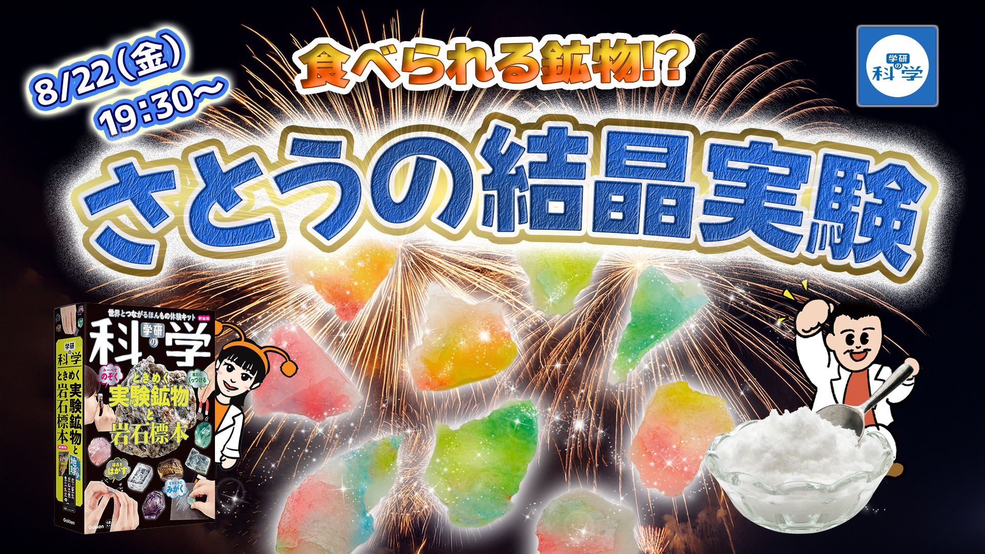 ・8月22日(金)19:30~ 食べられる鉱物!? さとうの結晶実験
