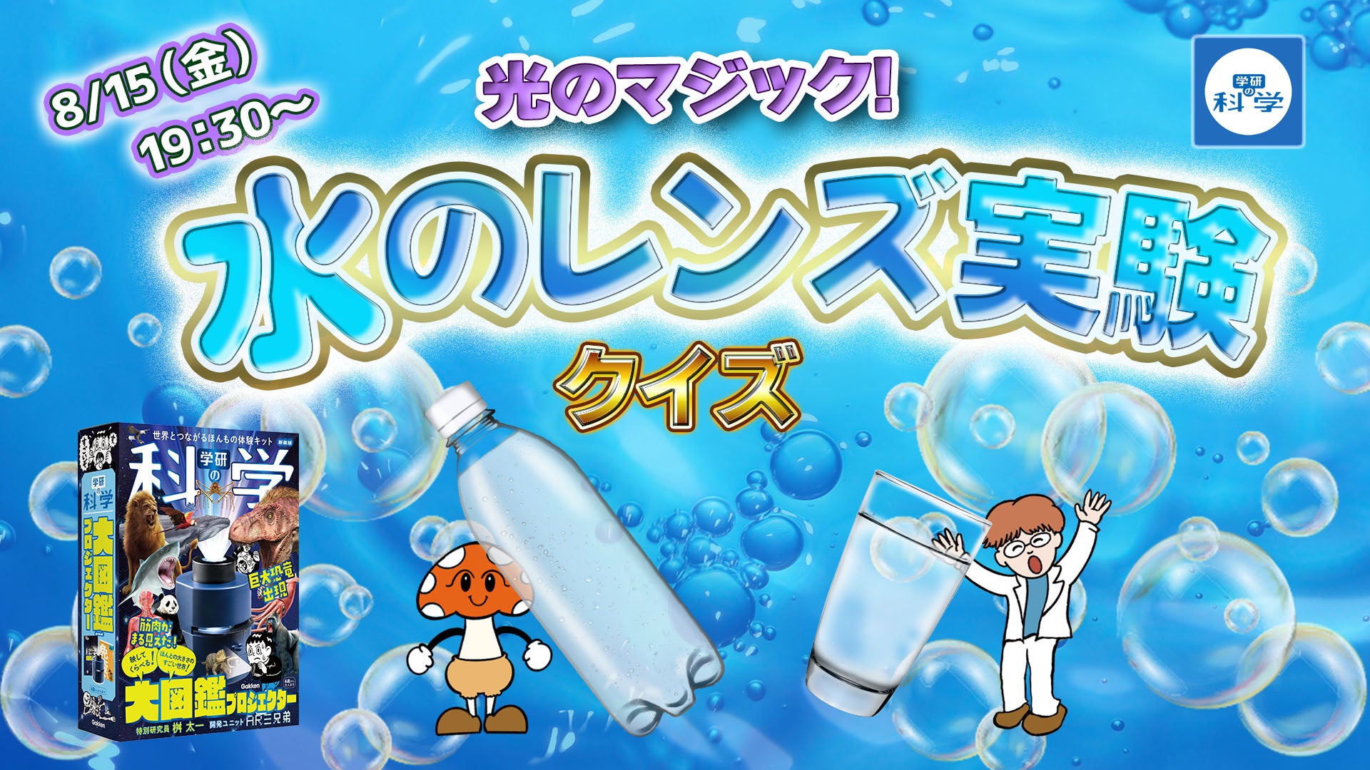 ・8月15日(金)19:30~ 光のマジック! 水のレンズ実験クイズ