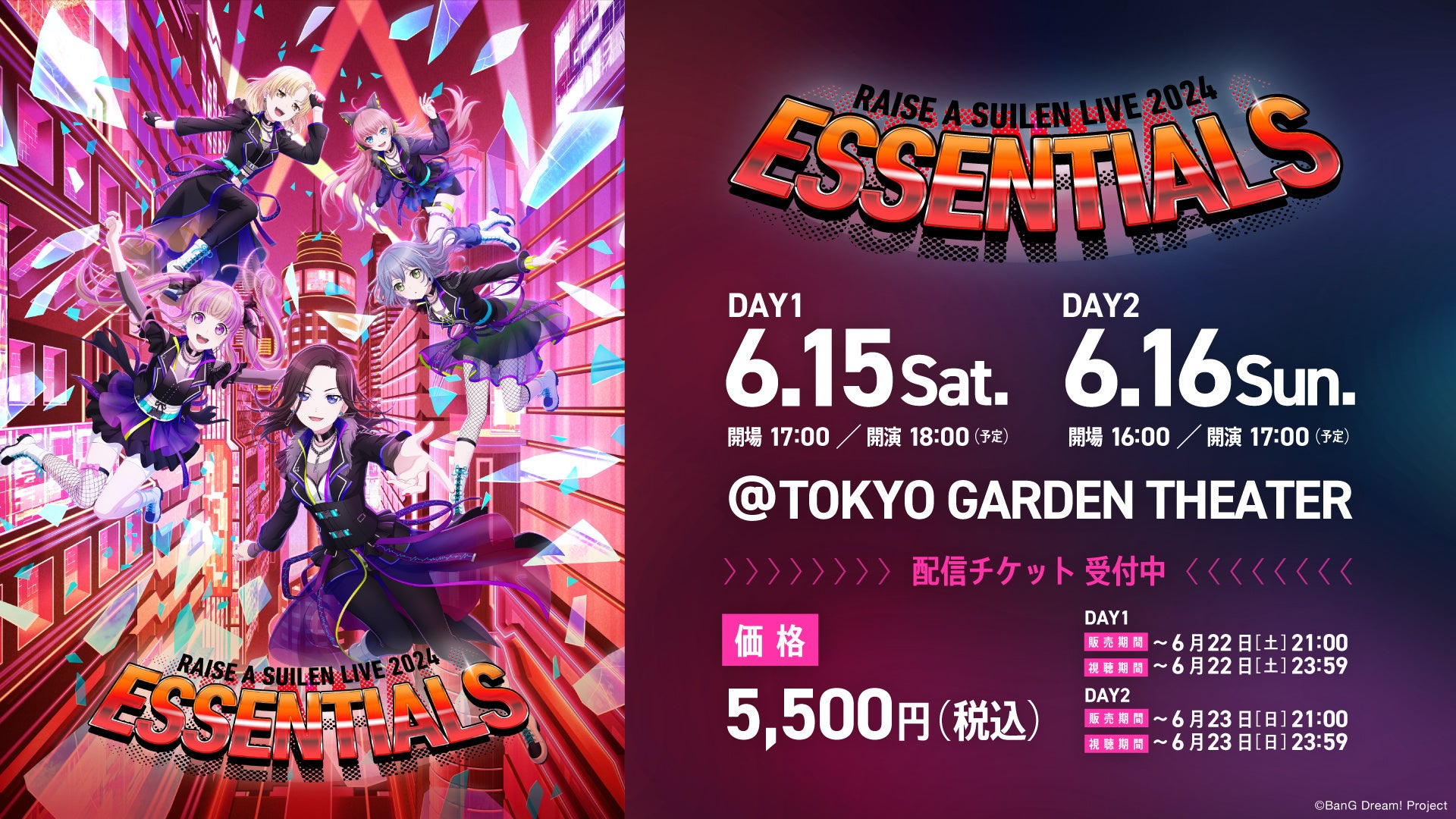 2024年6月15日(土)・16日(日)に、東京ガーデンシアターにてRAISE A SUILEN LIVE 2024「ESSENTIALS」を開催いたします。