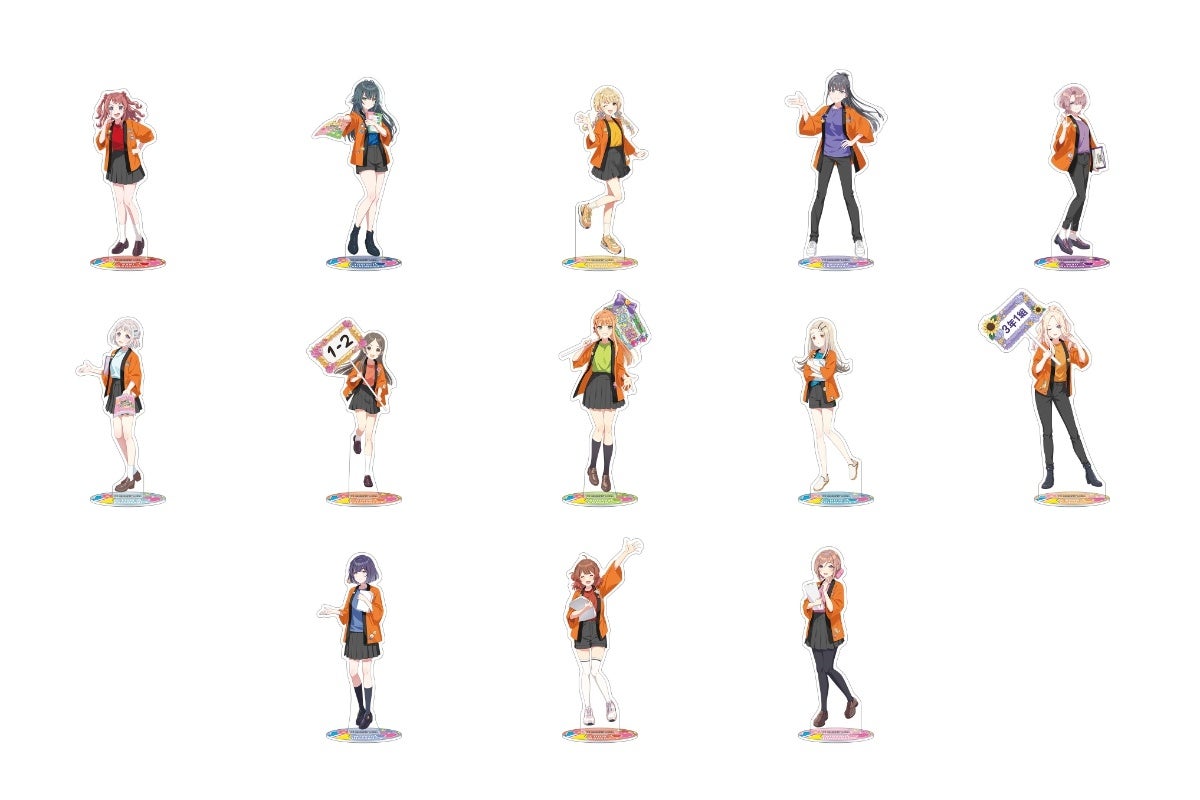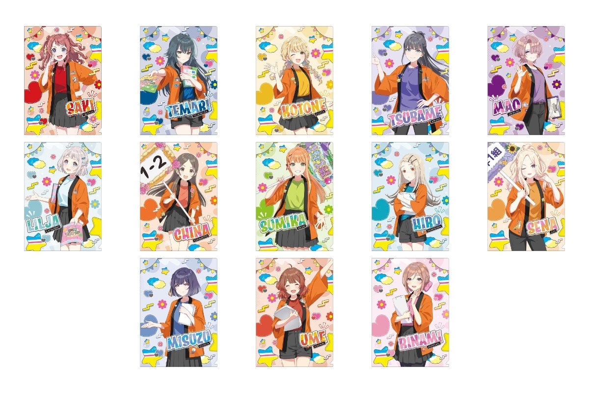 今回の描き下ろしイラストのテーマは、「初星文化祭」。おそろいの法被を羽織った花海咲季、月村手毬、藤田ことねたちアイドル候補生13人の「アクリルスタンド」、「クリアファイル」といった新商品を発売いたします。さらに、インスタントカメラで撮影したような写真風コレクションアイテム「ぱしゃこれ」などの人気アイテムもラインナップしています。