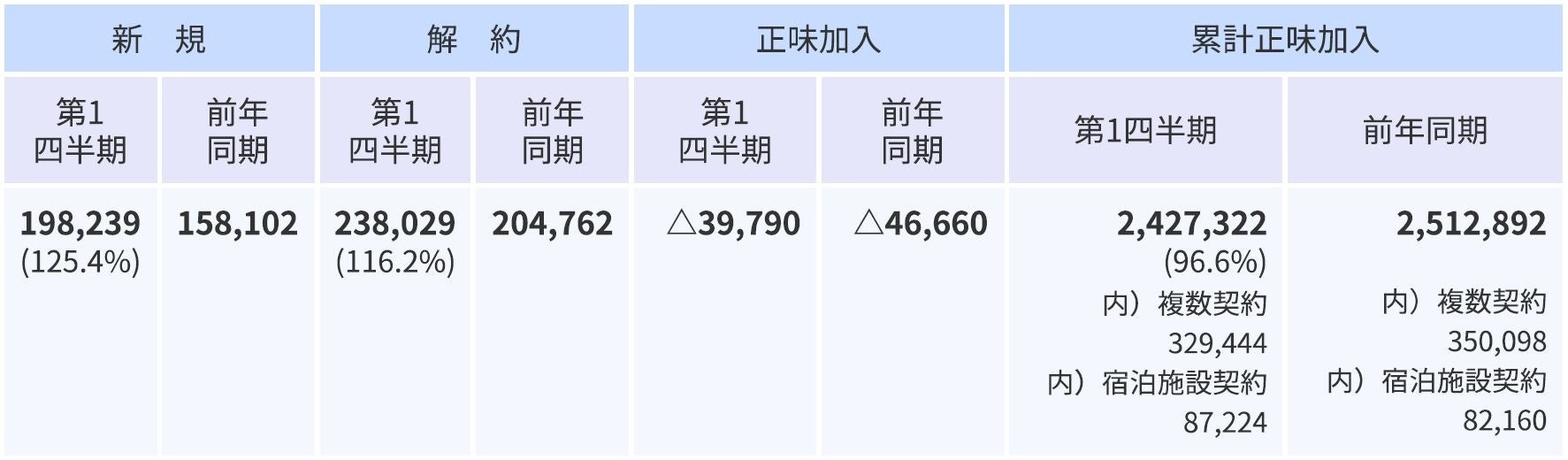(1)2024年度第1四半期(4月~6月)の加入件数および前年同期との比較