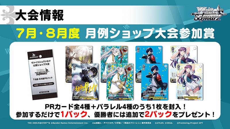 参加賞/「7月度・8月度PRパック」(全4種+パラレル4種のうち1枚を封入)を1パック