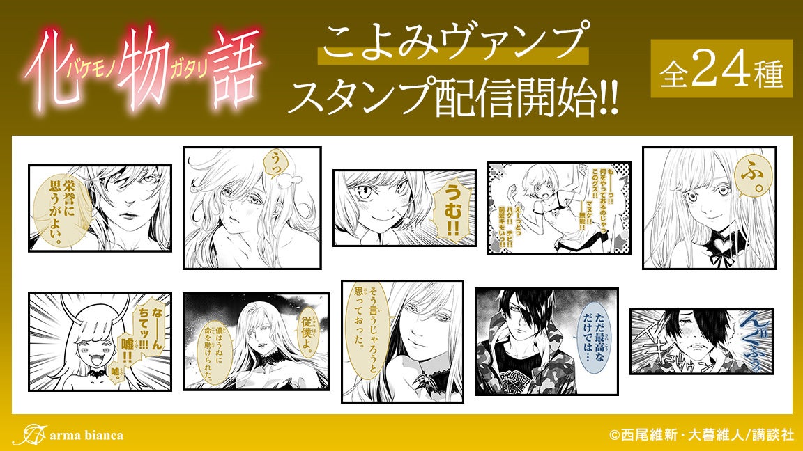 漫画『化物語』から『こよみヴァンプ』の名シーンを中心にラインナップしたスタンプの登場です!