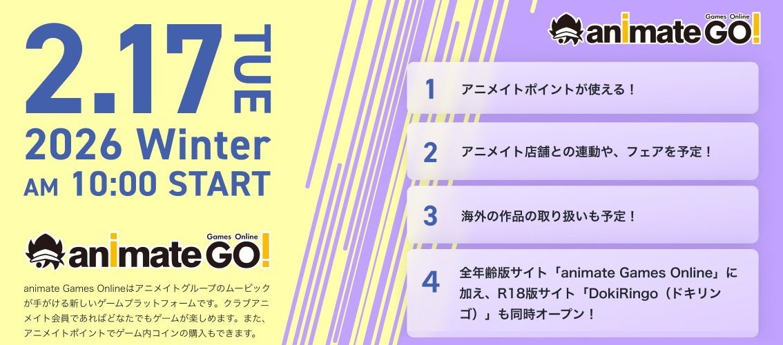 アニメイトグループのムービックが手掛ける新規ゲームプラットフォームanimate Games Online2026年2月17日にグランドオープン!