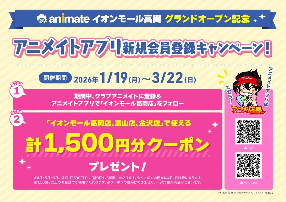 1)期間中、クラブアニメイトに登録&アニメイトアプリで「イオンモール高岡店」をフォロー。