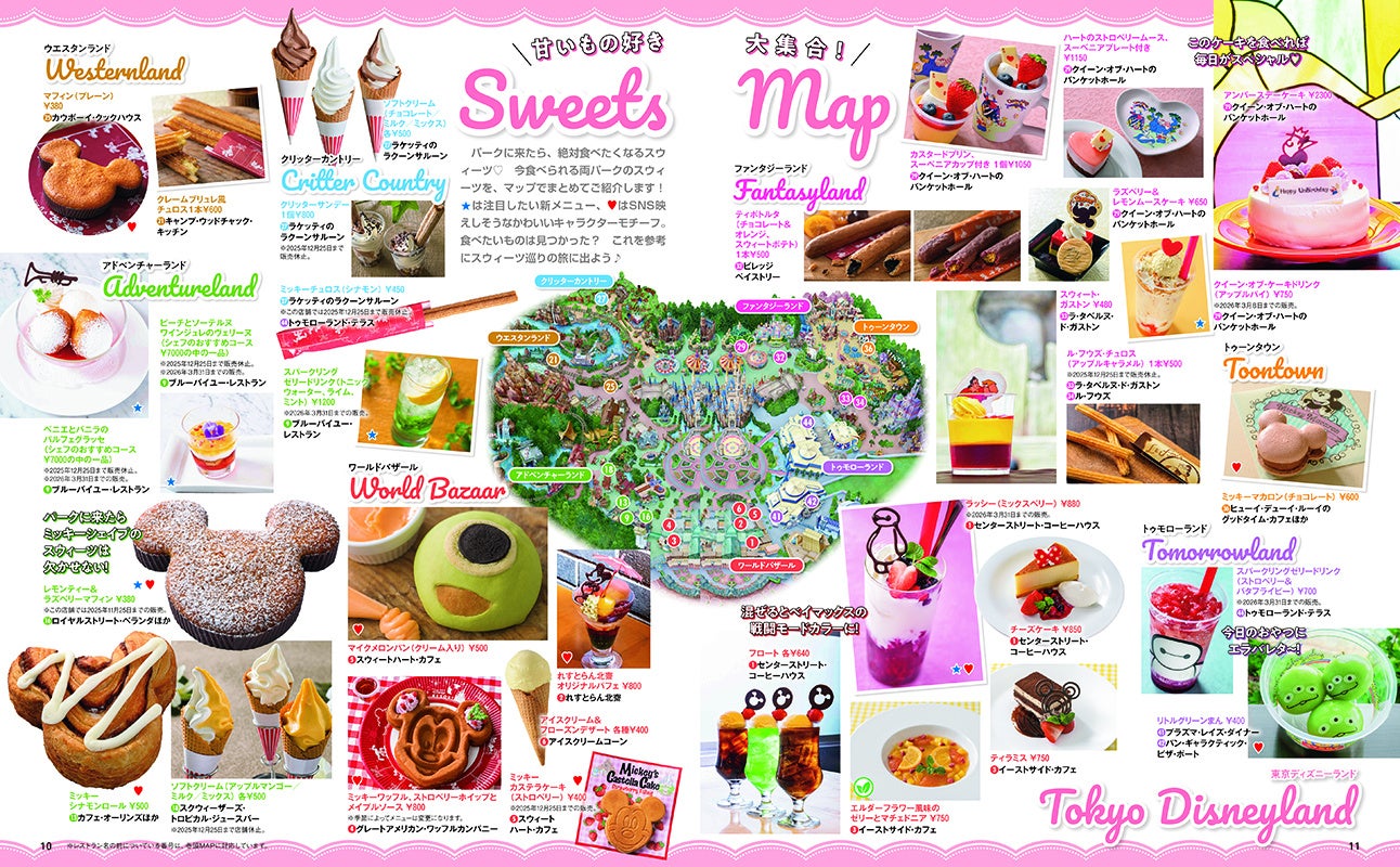 そして、パークに行く数日前から、何をどこで食べるか「ランチ会議」や「おやつミーティング」を開催するのもなかなか楽しい時間です。「レストランガイド2026」には、レストランの席を予約できるプライオリティーシーティング(PS)のシステム紹介や入園後に対象のレストランのメニューを受取時間を指定して注文できるモバイルオーダー(MO)など、スムーズに食事をするためのレストラン活用術を紹介しています。目次を開けば、どのお店でPSが利用できるか、MO対象はどのお店かが一目でわかります。また、巻頭の「Sweets Map」では新メニュー、キャラクターモチーフのメニューが一目でわかるよう印付きで紹介しています。