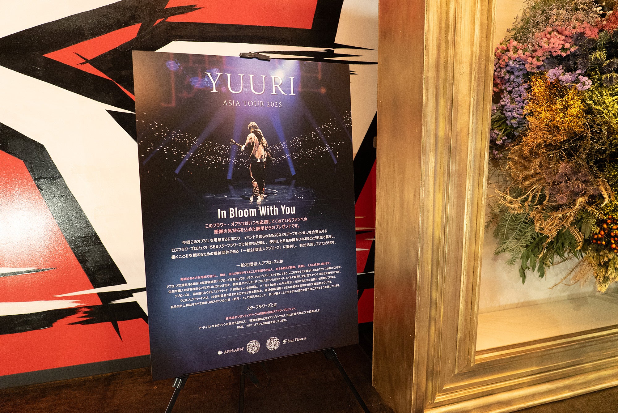 株式会社フロンティアワークスが運営するロスフラワー・プロジェクト「Star Flowers」は、2025年12月20日・21日に横浜・Kアリーナで開催されたシンガーソングライター優里さんの「YUURI ASIATOUR 2025」において、フラワーオブジェの制作・展示を行いました。