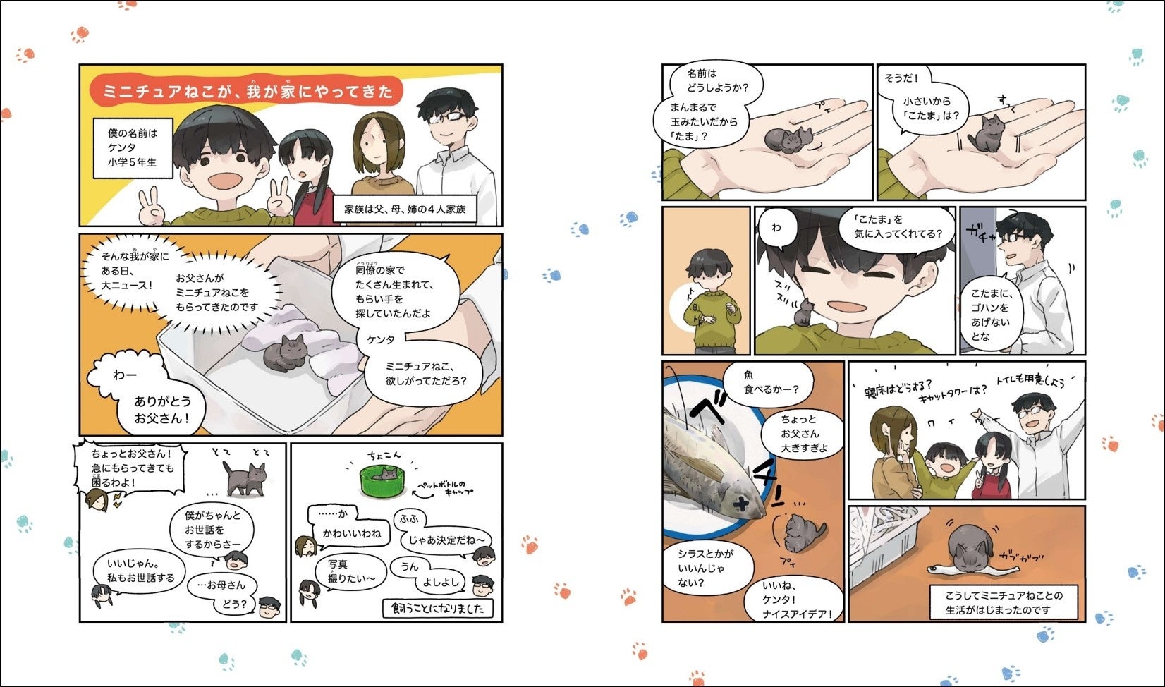 その小ささならではの魅力はもちろん、猫を飼っている人は思わず「あるある!」とうなずいてしまう猫との暮らしの楽しい1コマがたっぷり詰まっていて、思わず笑顔になれる1冊です。
