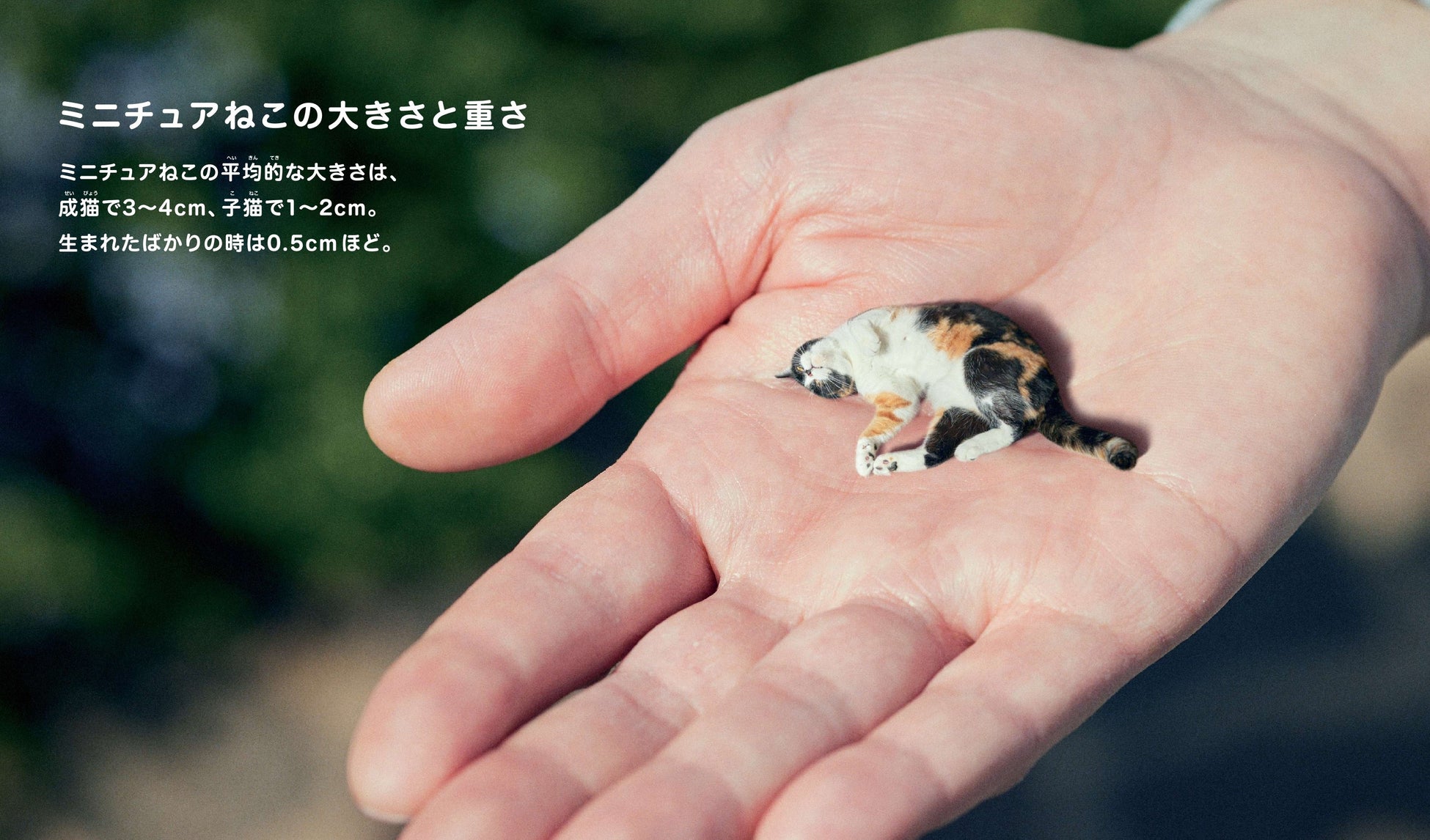 体長3cm、体重20gという指先サイズの猫が発見された!? 猫の性質はそのままに、現代の暮らしに合わせて小さく進化したとされる「ミニチュアねこ」。その、生態と日常を追い、気まぐれな可愛さに翻弄される家族の様子を写真とマンガで綴った、キュートな空想飼育書が8月1日に発売されます!