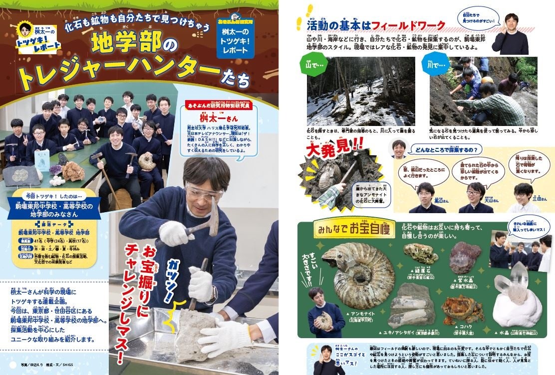 『学研の科学』は、体験キットの「恐竜化石発掘キット」、恐竜や化石などについての記事が満載の本誌、別冊の学研まんが「ひみつシリーズ」、実験の投稿やオンラインワークショップに参加できるオンラインコミュニティ「あそぶんだ研究所」がセットになって、ほんものの科学体験をお届けします。